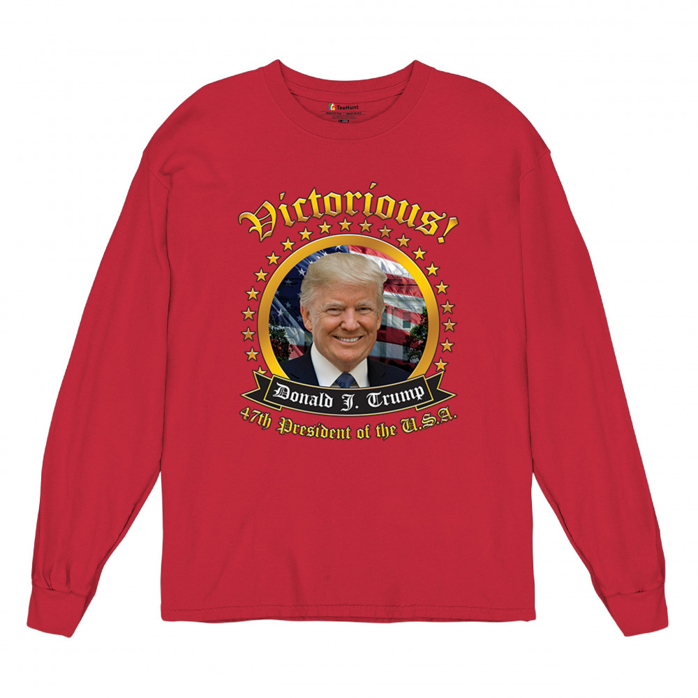 Showcase your support for Trump as the 47th President with this "Victorious" design. Perfect for patriots, America First advocates, and Red Wave supporters.