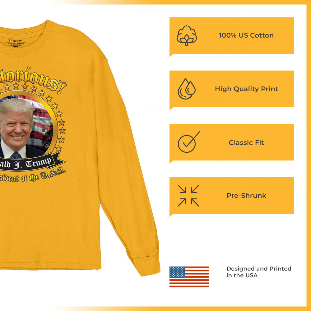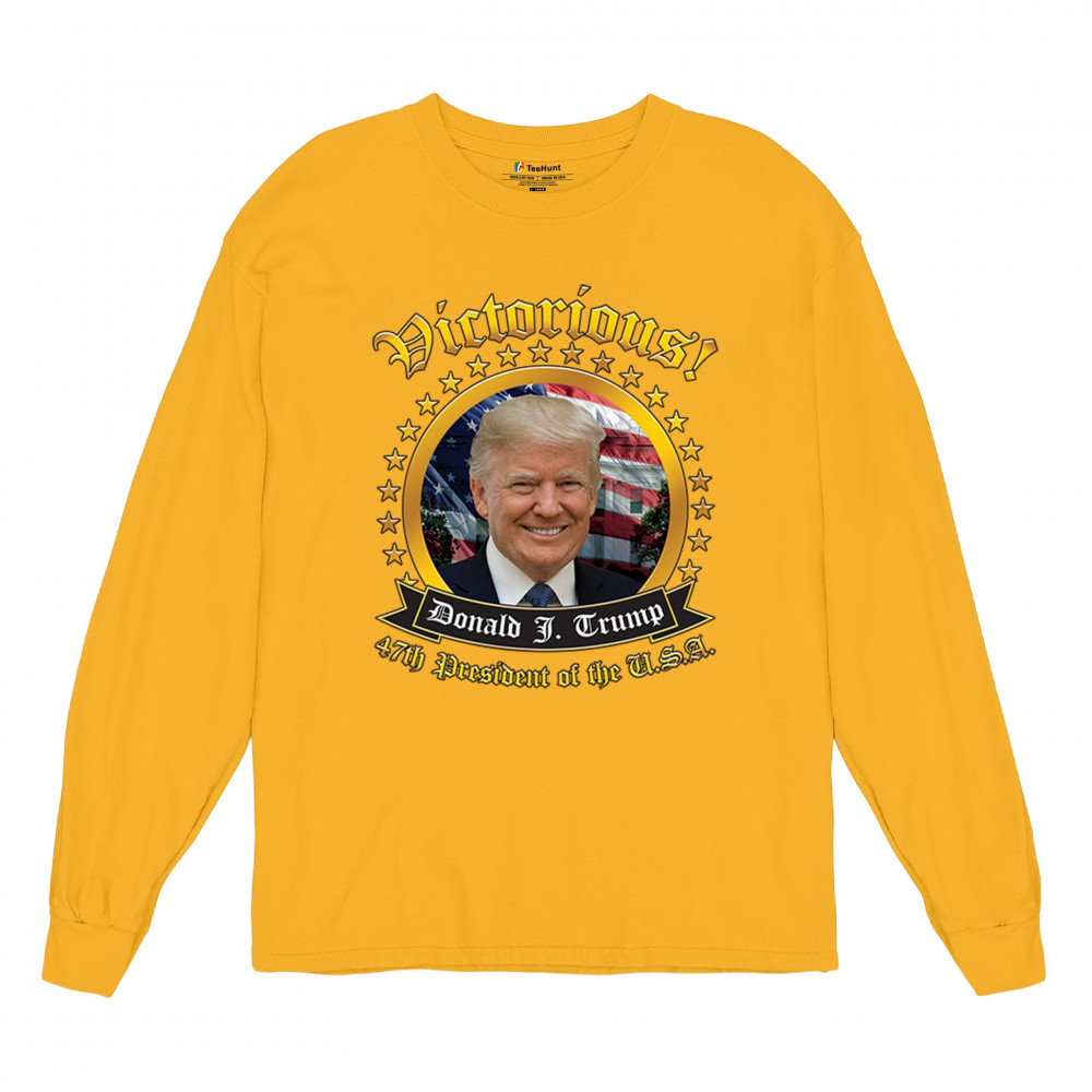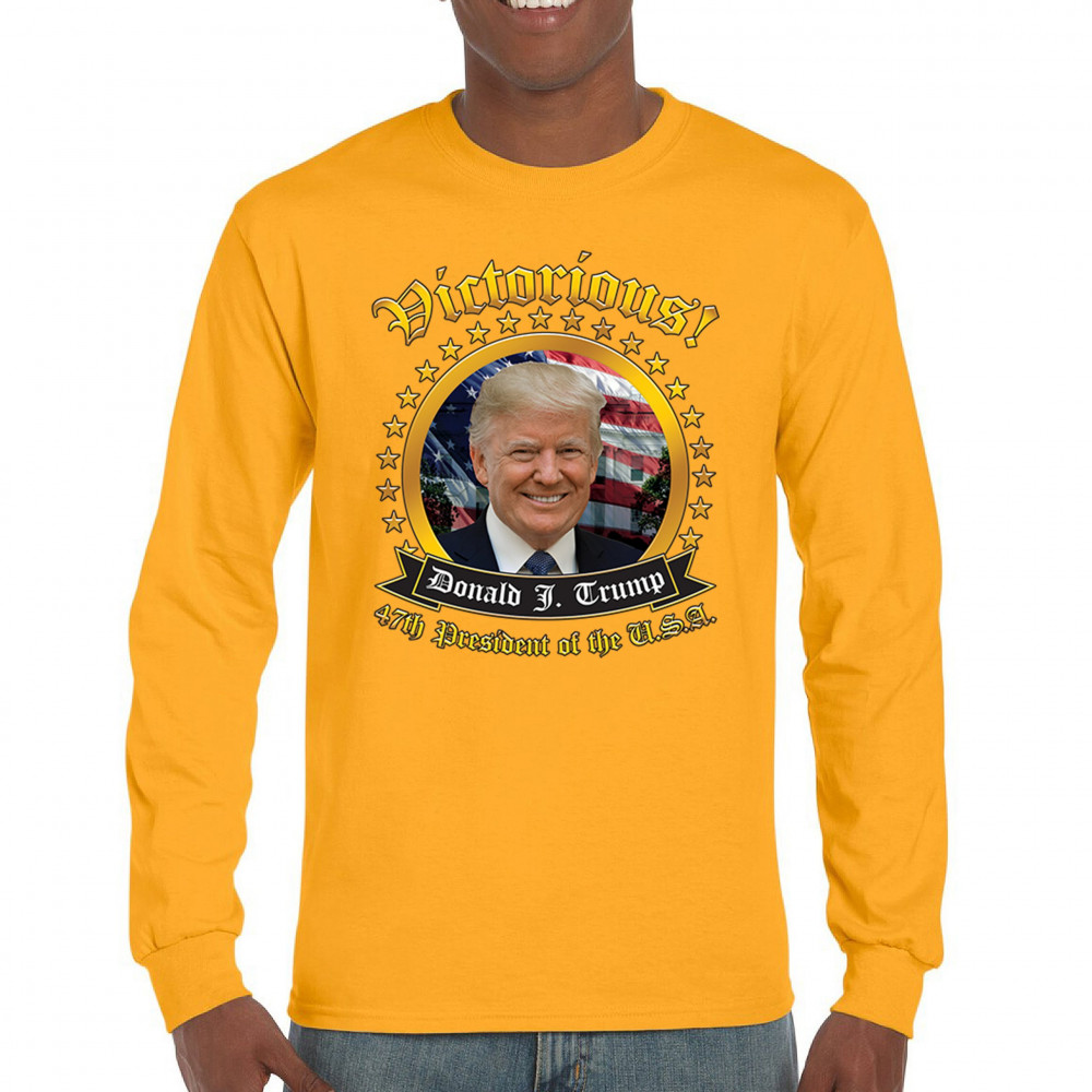 The "Victorious" design captures the spirit of Donald J. Trump’s victory as the 47th President, embodying the pride and patriotism of true American supporters. With elements of the American flag and an inspiring message, it’s a perfect symbol for Republicans, conservatives, and America First advocates. Celebrate the Red Wave and stand for a strong, united nation. Perfect for showing support at rallies, gatherings, or casual wear.