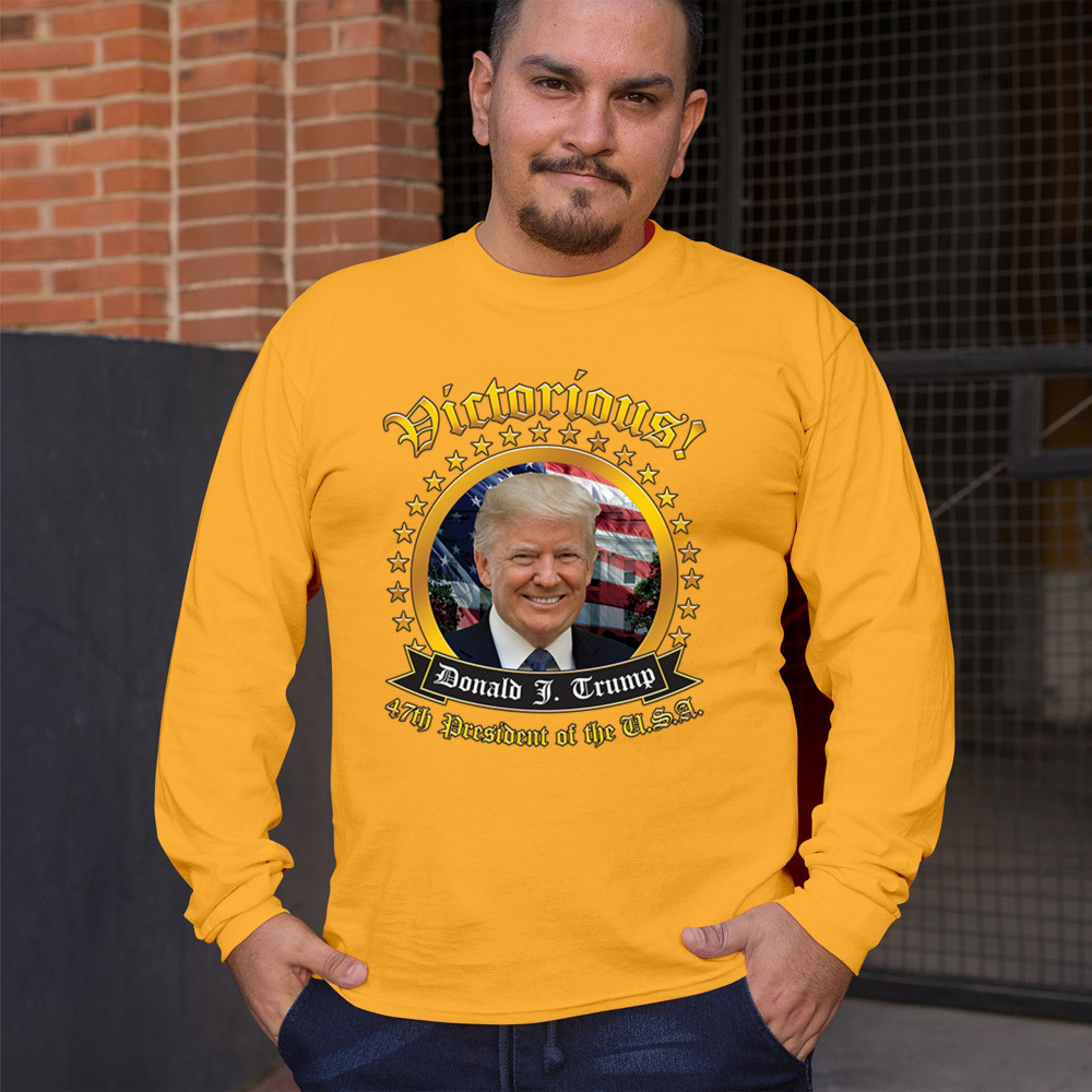 Showcase your support for Trump as the 47th President with this "Victorious" design. Perfect for patriots, America First advocates, and Red Wave supporters.