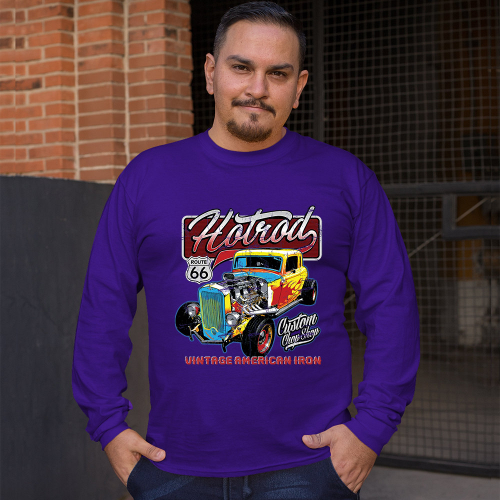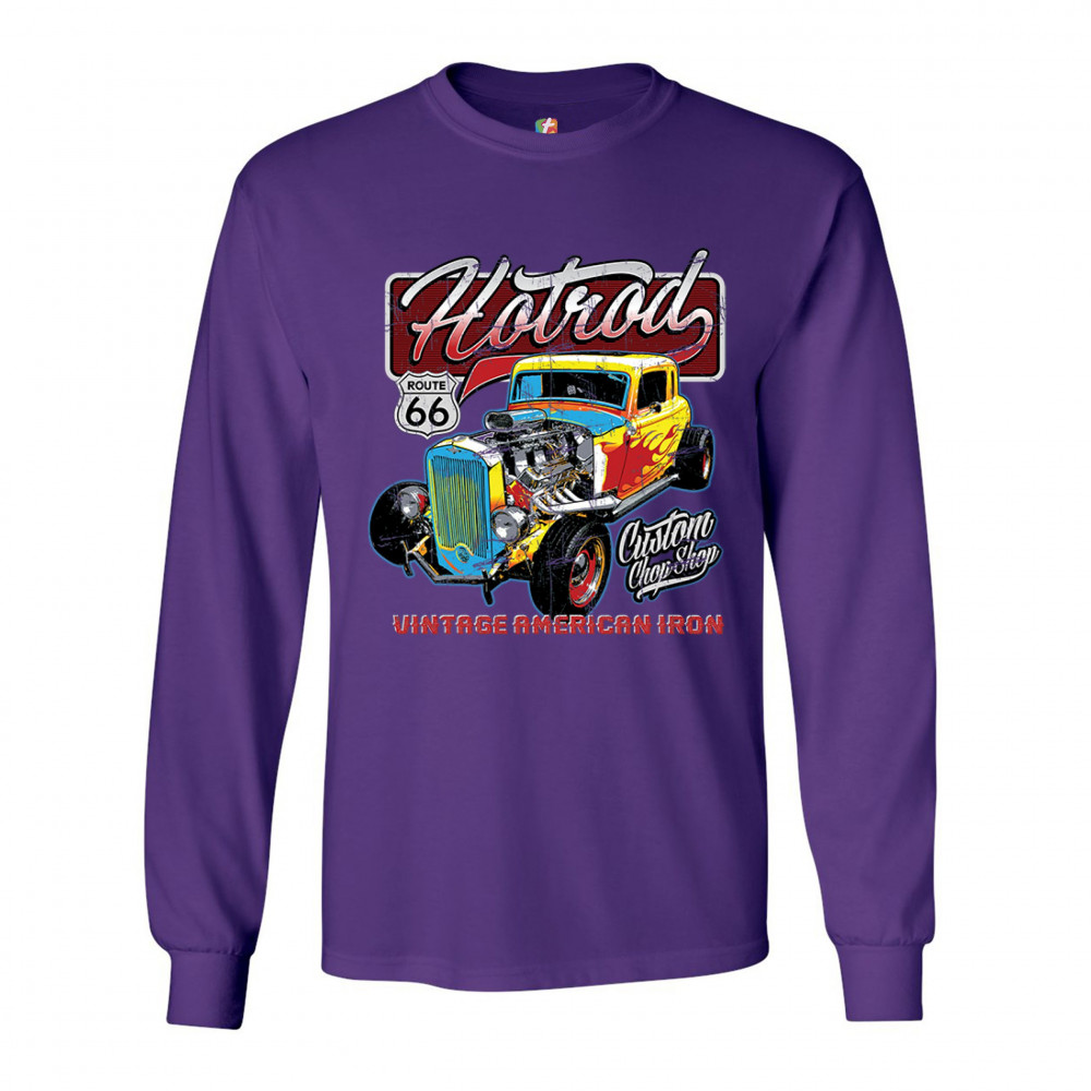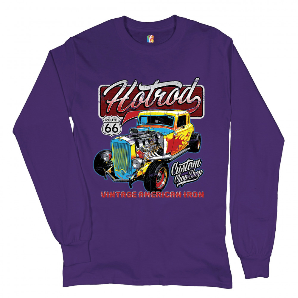 VINTAGE AMERICAN IRON long sleeve t-shirt hot rod route 66 retro racing purple