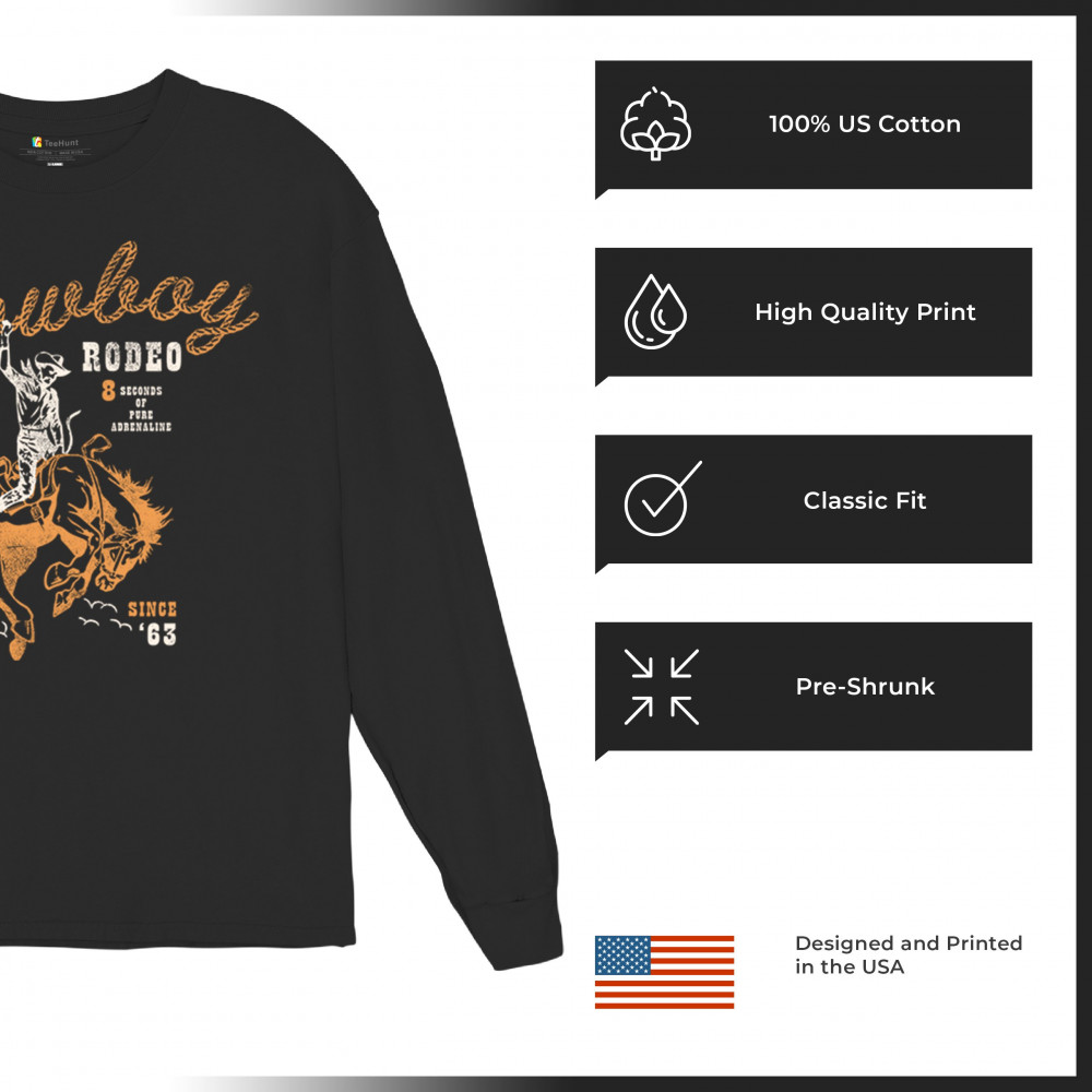 Cowboy bull riding design for rodeo fans and western lovers. Celebrates 8 seconds of adrenaline, cowboy grit, and rodeo tradition.