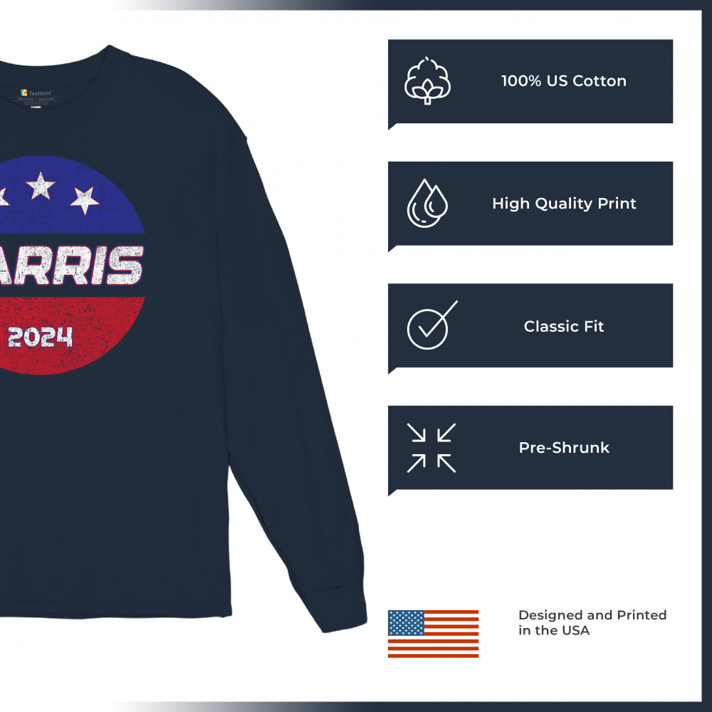 Embrace your political stance with this Kamala Harris 2024 design, crafted for supporters of the Democratic party and those who believe in a brighter, inclusive future. The design features the American flag and bold lettering, making it a perfect choice for rallies, political events, or casual wear. It underscores the historic significance of electing the first female president and represents a broad coalition of black Americans, Hispanic Americans, LGBTQ, and other minority groups. Stand out and show your unwavering support for Kamala Harris and her vision for America.