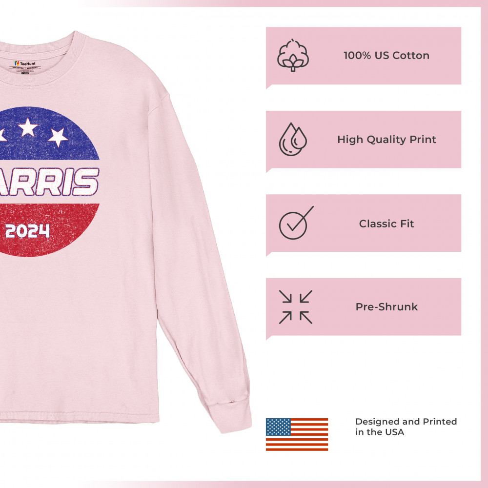 Embrace your political stance with this Kamala Harris 2024 design, crafted for supporters of the Democratic party and those who believe in a brighter, inclusive future. The design features the American flag and bold lettering, making it a perfect choice for rallies, political events, or casual wear. It underscores the historic significance of electing the first female president and represents a broad coalition of black Americans, Hispanic Americans, LGBTQ, and other minority groups. Stand out and show your unwavering support for Kamala Harris and her vision for America.