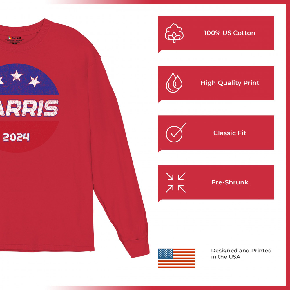 Support Kamala Harris 2024 with this patriotic design featuring the American flag and bold text. Perfect for rallies and political events, it celebrates diversity and inclusivity.