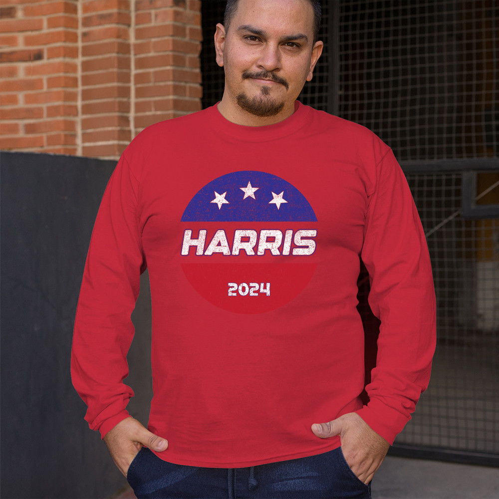 Embrace your political stance with this Kamala Harris 2024 design, crafted for supporters of the Democratic party and those who believe in a brighter, inclusive future. The design features the American flag and bold lettering, making it a perfect choice for rallies, political events, or casual wear. It underscores the historic significance of electing the first female president and represents a broad coalition of black Americans, Hispanic Americans, LGBTQ, and other minority groups. Stand out and show your unwavering support for Kamala Harris and her vision for America.