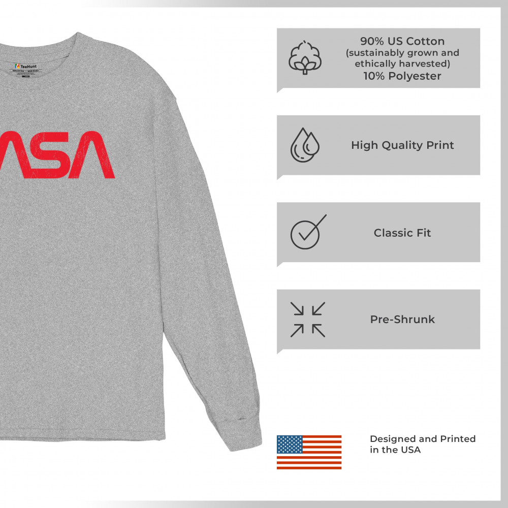 Celebrate the adventure of space travel with this vintage NASA worm logo shirt in striking red. Perfect for astronauts, rocket launch enthusiasts, and space exploration fans, it pays tribute to America’s journey from the Apollo program to future Mars missions. A cosmic emblem for anyone passionate about humanity’s place in the universe.