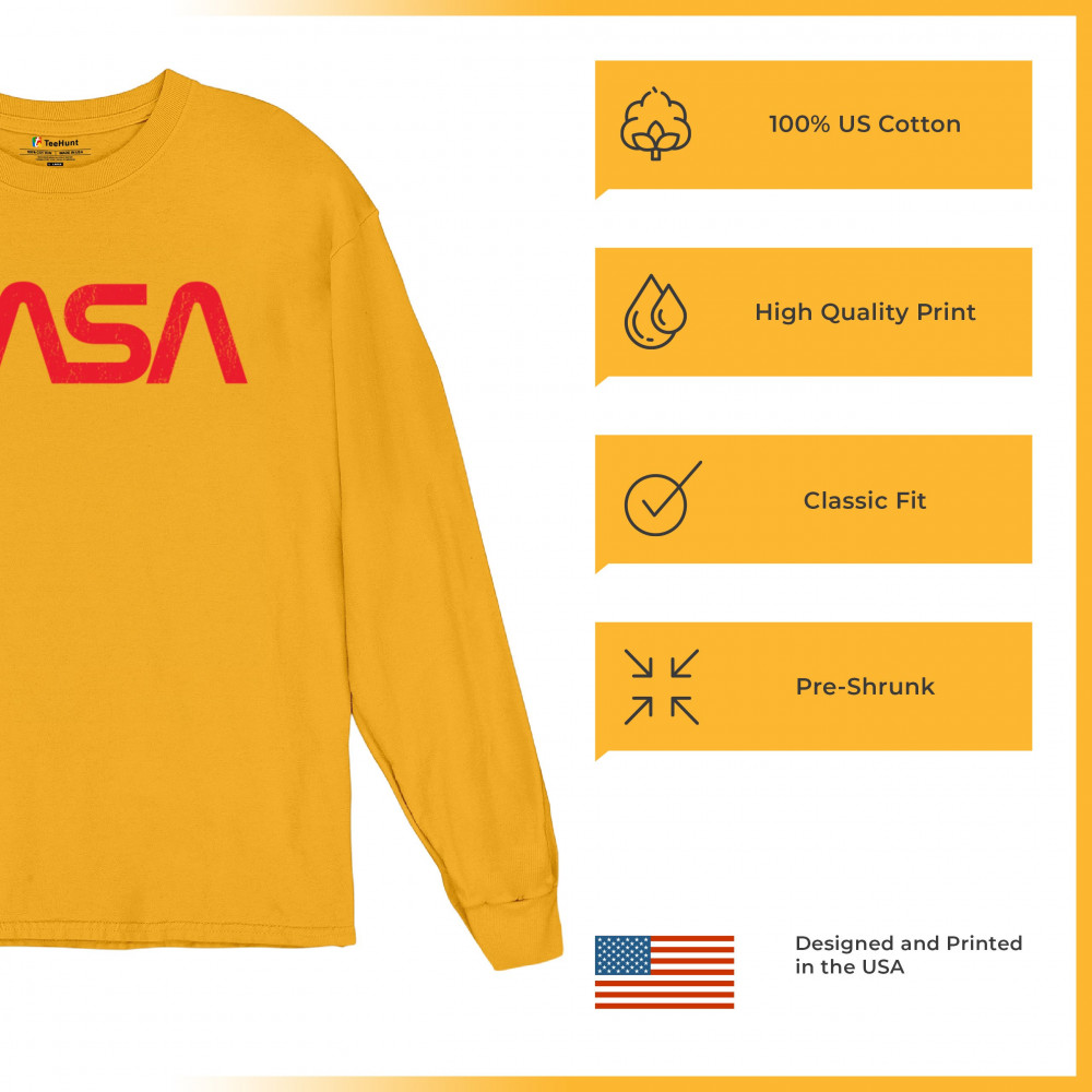 Vintage NASA worm logo shirt celebrates America’s cosmic journey, Apollo legacy, rocket launches, and the spirit of space exploration.