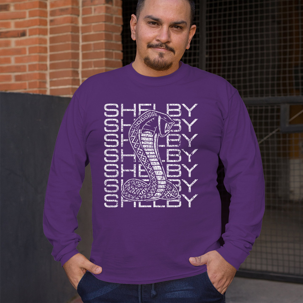 Wrap yourself in the power of American automotive history with this striking Shelby design, featuring the Cobra as its centerpiece. Celebrating over 50 years of Ford's racing dominance, from the legendary 1965 Mustang to Carroll Shelby's indomitable spirit, this shirt embodies the essence of the muscle car era. Whether it's a casual drive or a tribute to Ken Miles, this piece is for those who appreciate the legendary Shelby GT 350 and GT 500.