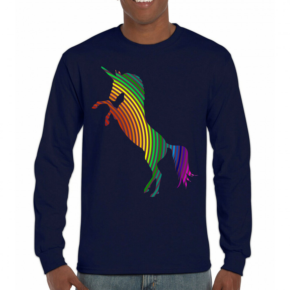 VIVID RAINBOW-STRIPE REARING long sleeve t-shirt lgbtq+ queer gay pride navy blue
