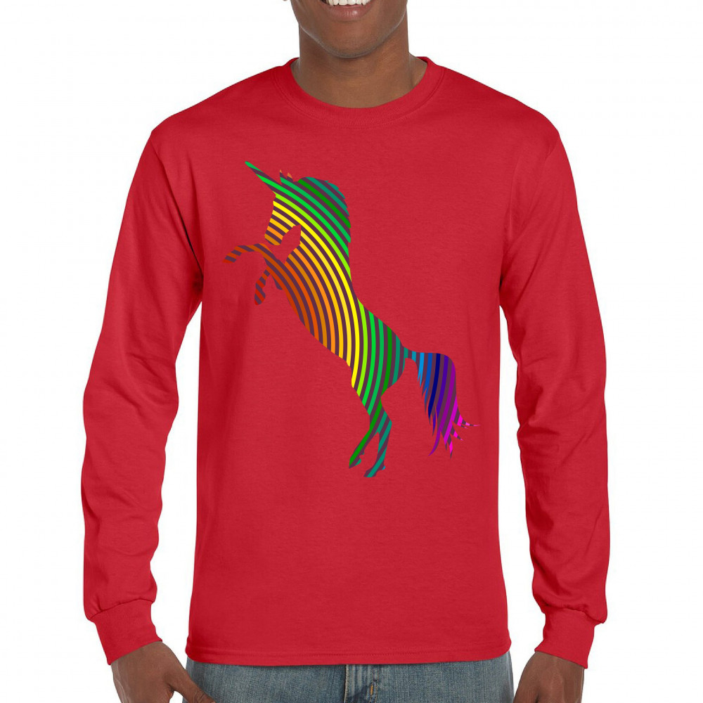 VIVID RAINBOW-STRIPE REARING long sleeve t-shirt lgbtq+ queer gay pride red