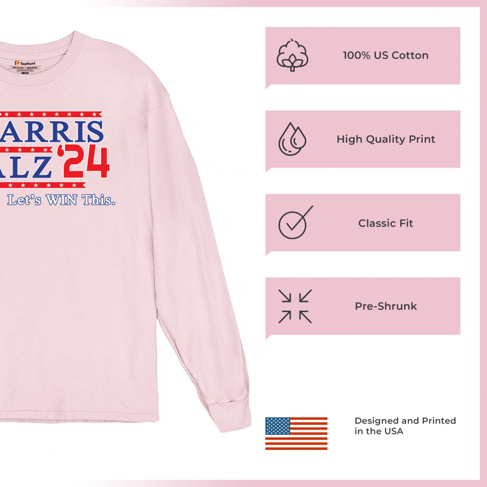 Express your support for Kamala Harris and Tim Walz in the 2024 election with this dynamic and patriotic design. Perfect for rally participants, dedicated supporters, and advocates of liberal values, this design captures the essence of the campaign. Highlighting America First, women's rights, and LGBTQ+ equality, it symbolizes the fight for victory and justice. Trust in government and join the rebelution against conservative agendas. Stand with Kamala and Walz for a brighter future. Let's win this together in 2024. Let's Win This.