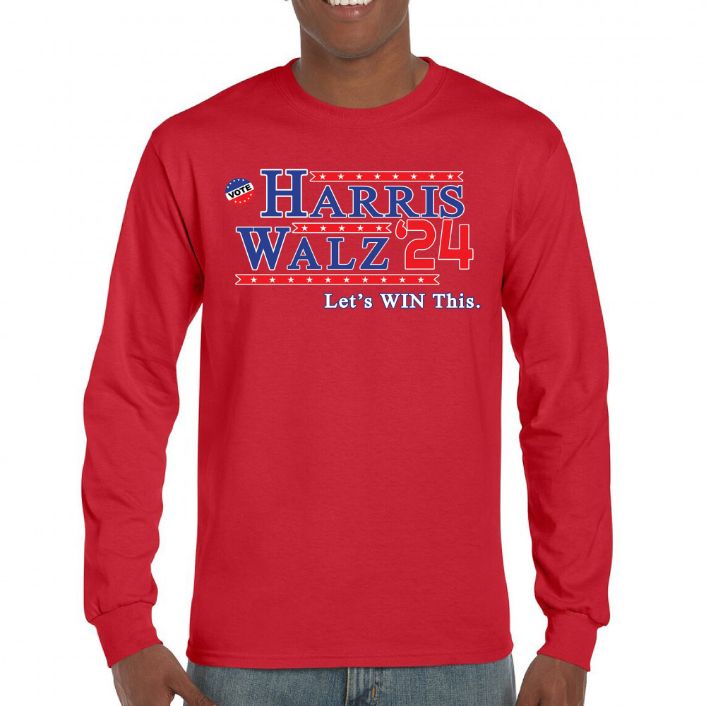 Express your support for Kamala Harris and Tim Walz in the 2024 election with this dynamic and patriotic design. Perfect for rally participants, dedicated supporters, and advocates of liberal values, this design captures the essence of the campaign. Highlighting America First, women's rights, and LGBTQ+ equality, it symbolizes the fight for victory and justice. Trust in government and join the rebelution against conservative agendas. Stand with Kamala and Walz for a brighter future. Let's win this together in 2024. Let's Win This.