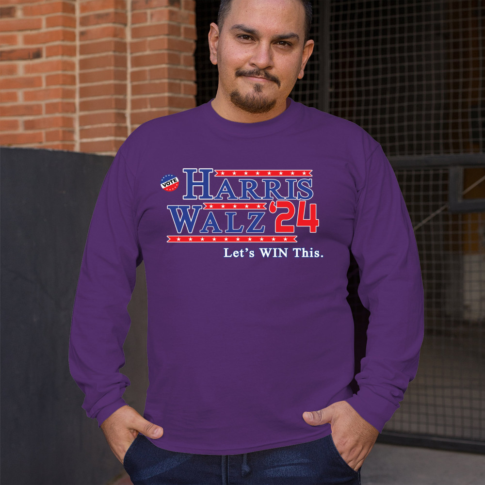 Express your support for Kamala Harris and Tim Walz in the 2024 election with this dynamic and patriotic design. Perfect for rally participants, dedicated supporters, and advocates of liberal values, this design captures the essence of the campaign. Highlighting America First, women's rights, and LGBTQ+ equality, it symbolizes the fight for victory and justice. Trust in government and join the rebelution against conservative agendas. Stand with Kamala and Walz for a brighter future. Let's win this together in 2024. Let's Win This.
