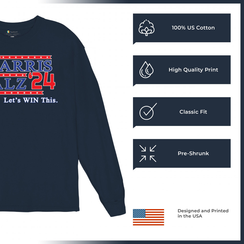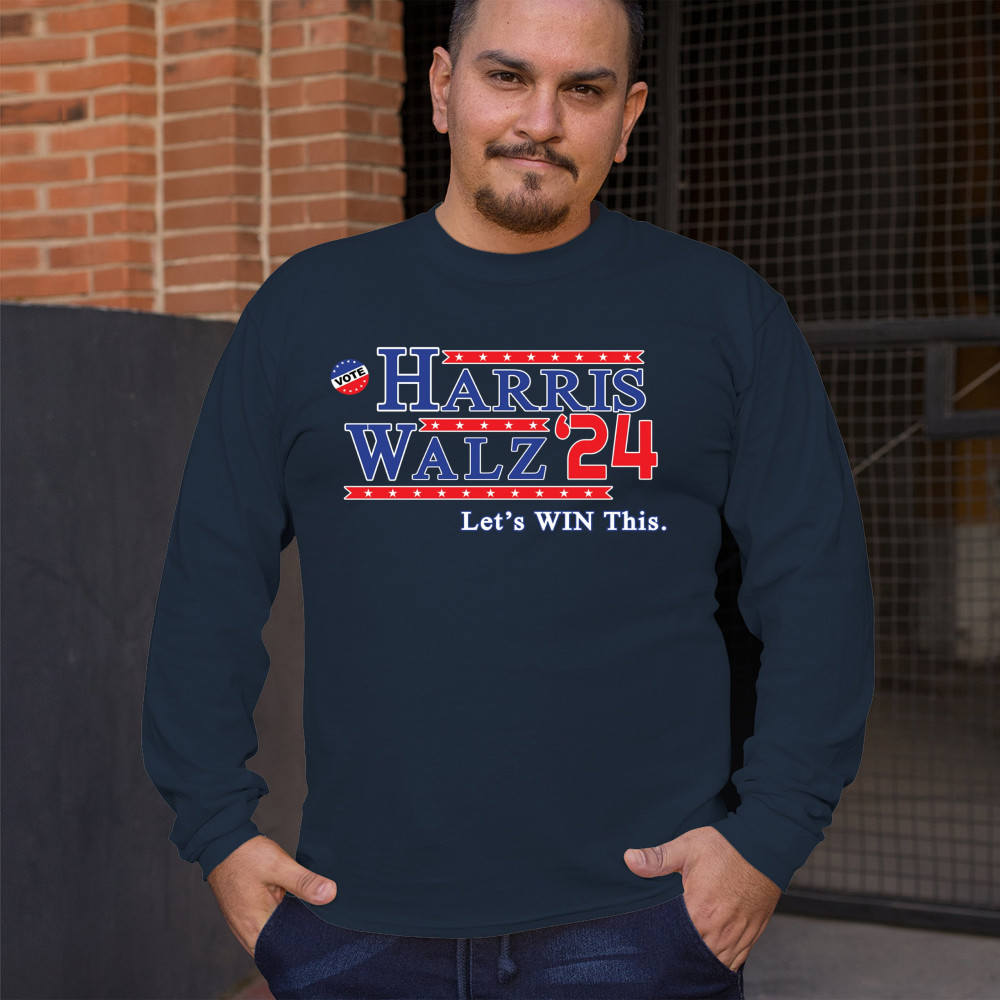 Express your support for Kamala Harris and Tim Walz in the 2024 election with this dynamic and patriotic design. Perfect for rally participants, dedicated supporters, and advocates of liberal values, this design captures the essence of the campaign. Highlighting America First, women's rights, and LGBTQ+ equality, it symbolizes the fight for victory and justice. Trust in government and join the rebelution against conservative agendas. Stand with Kamala and Walz for a brighter future. Let's win this together in 2024. Let's Win This.