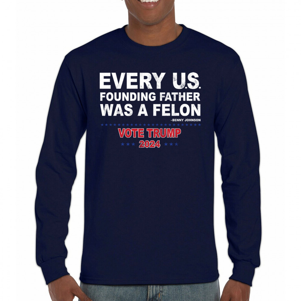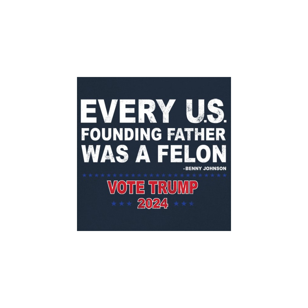 Show your support for Trump 2024 with a bold design quoting "Every U.S. founding father was a felon." Stand against political attacks and support an America-first vision.