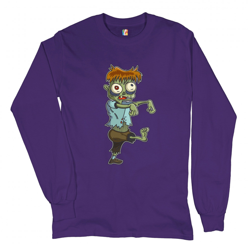 A print featuring a zombie, walking in a stereotypical movie fashion with the arms extended forward. The zombie has messy ginger hair and eyes popping out but he looks rather funny and non-threatening. A great choice for a person who is into horror movies