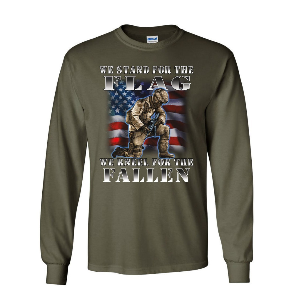 WE STAND FOR THE FLAG long sleeve t-shirt veteran military pow mia army navy tee military green