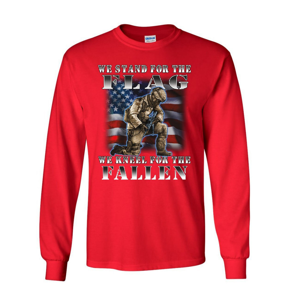 WE STAND FOR THE FLAG long sleeve t-shirt veteran military pow mia army navy tee red