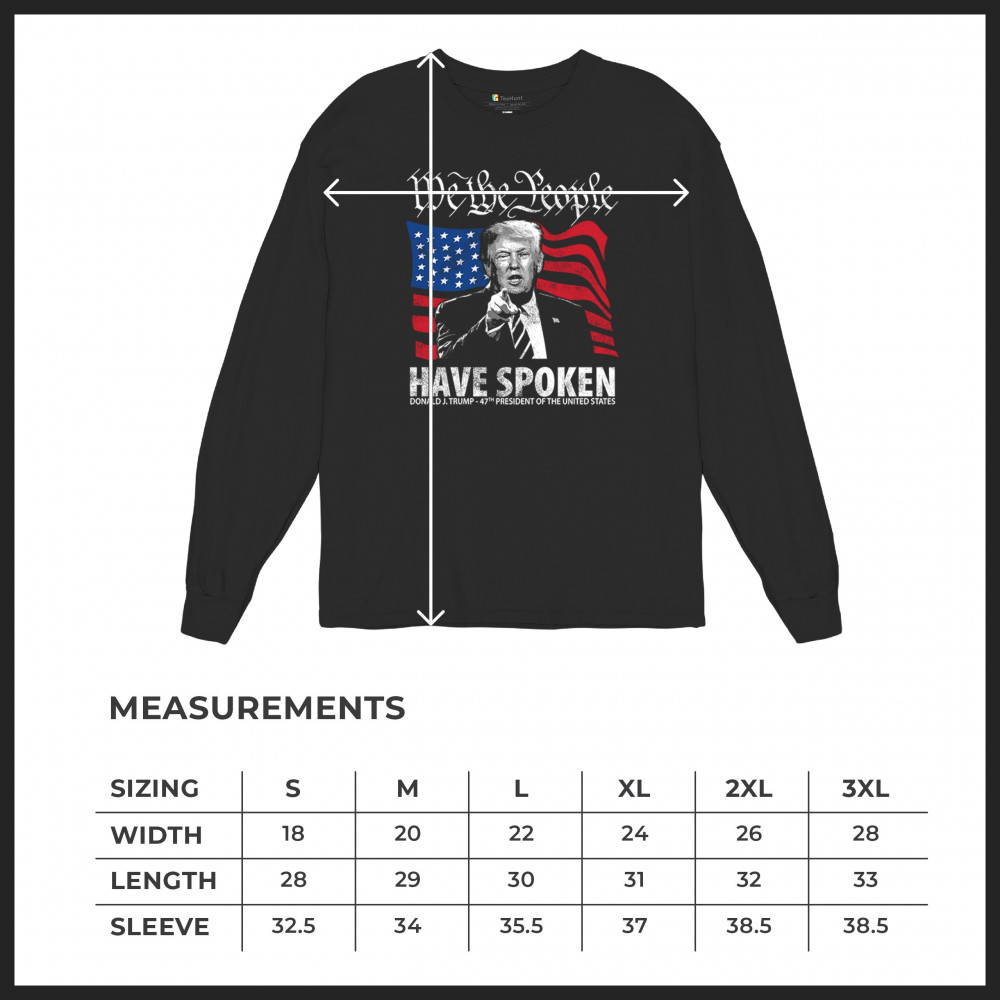 Express your American pride with this impactful "We the People Have Spoken" design, supporting Donald J. Trump as the 47th President of the United States. Ideal for conservative supporters, patriots, and those who stand strong with the American flag and values. This design is for those who believe in America First, the Red Wave, and a powerful Republican stance. Show your commitment and make a statement for a strong America.