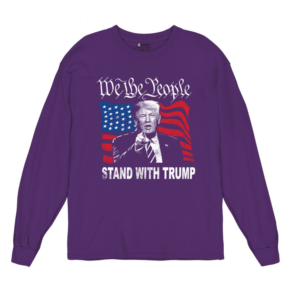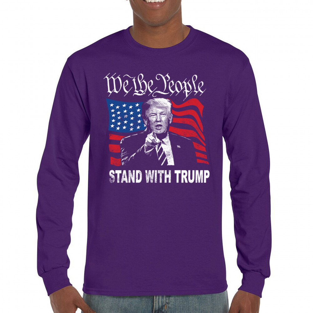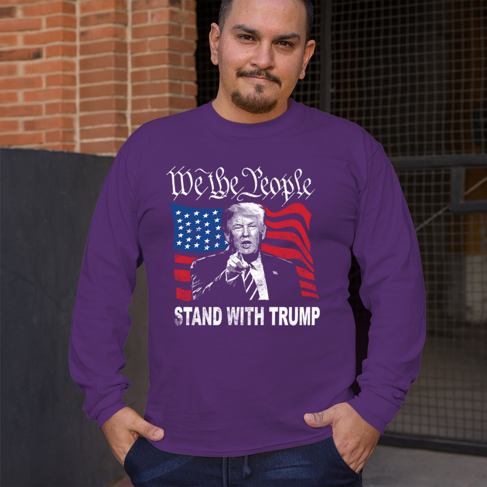 Show your support for Trump with the "We the People Stand with Trump" design. A powerful symbol of patriotism, featuring Trump and the American flag. Stand up for conservative values.