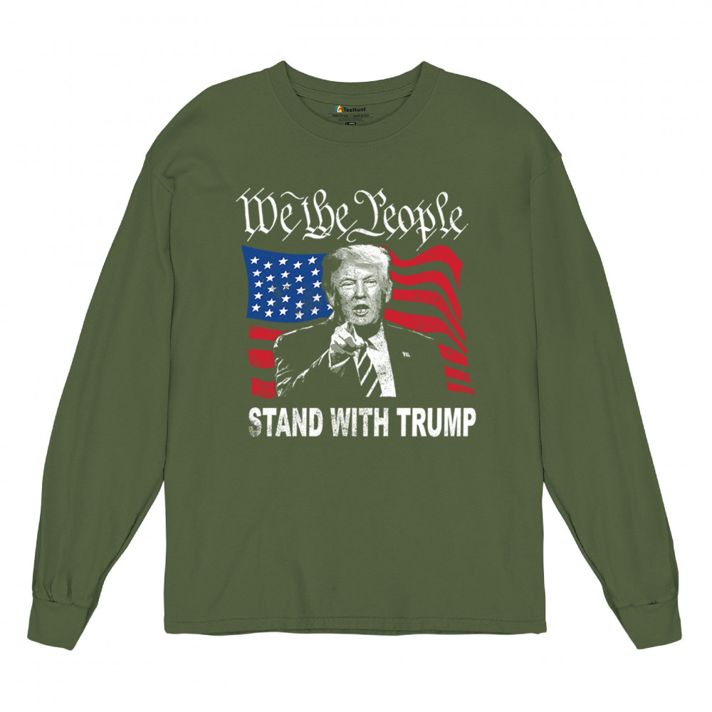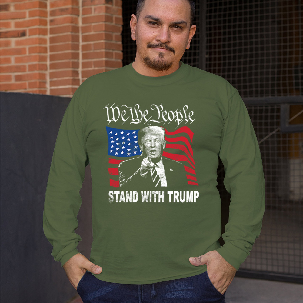Show your support for Trump with the "We the People Stand with Trump" design. A powerful symbol of patriotism, featuring Trump and the American flag. Stand up for conservative values.
