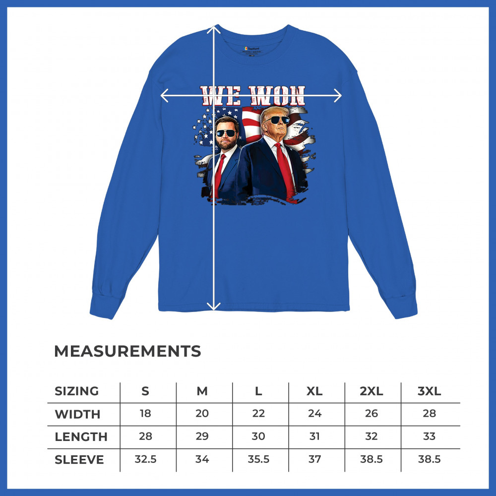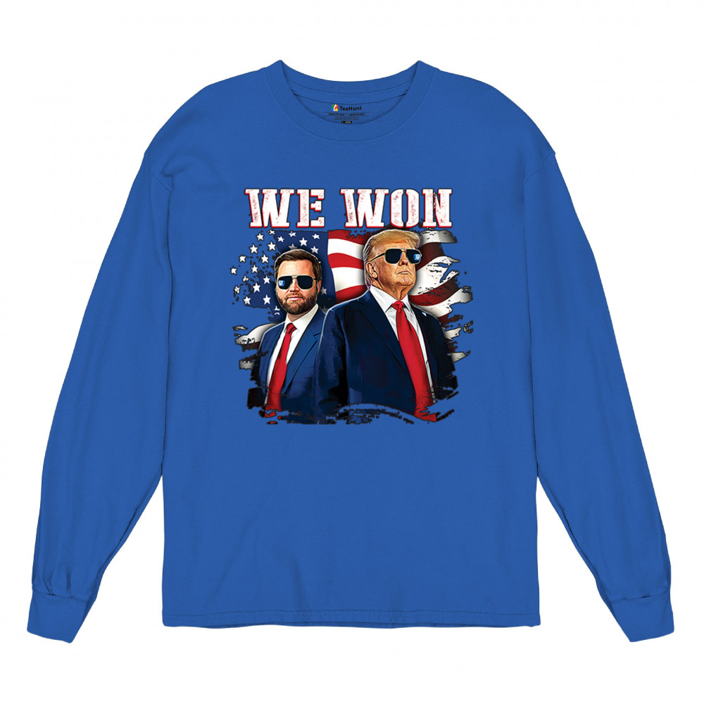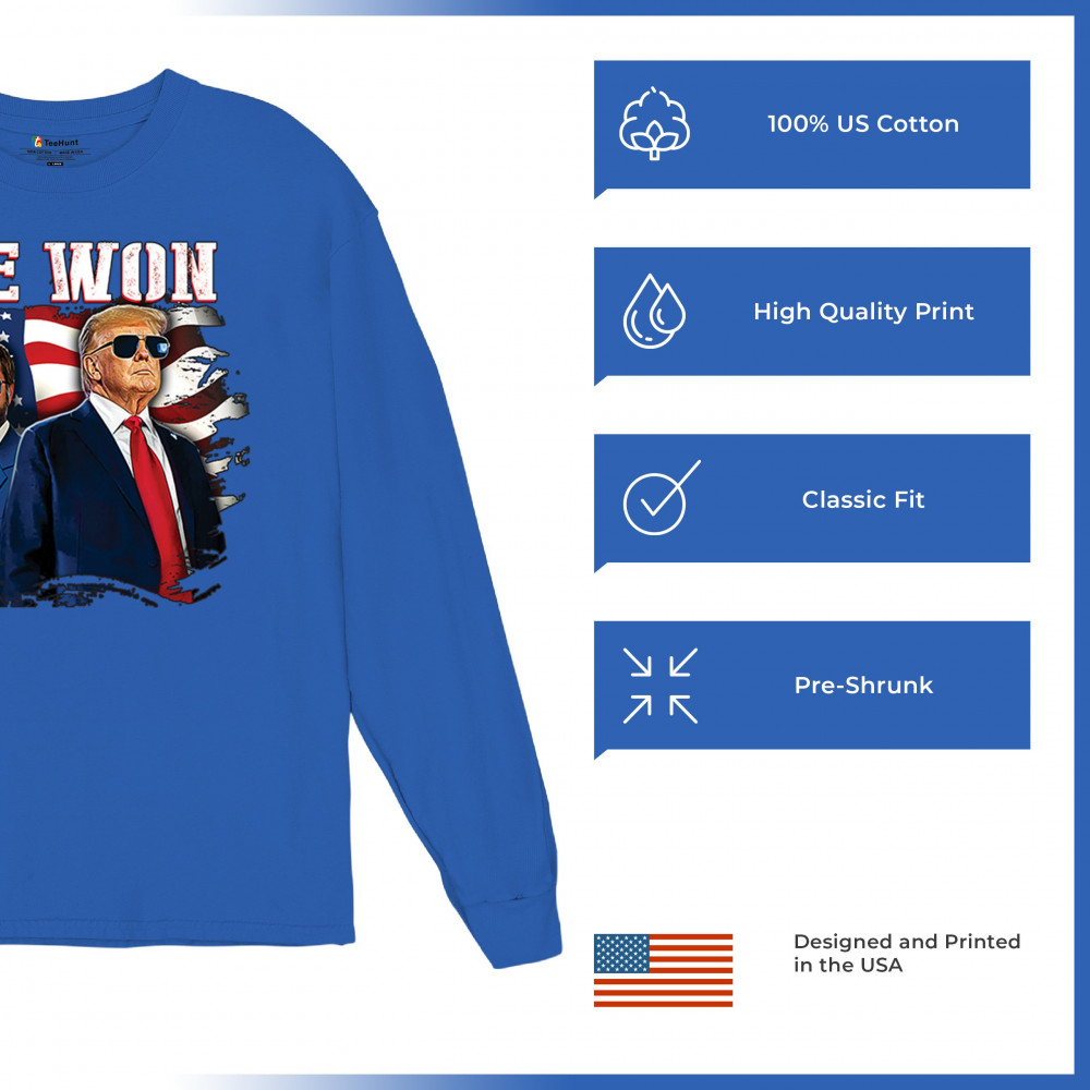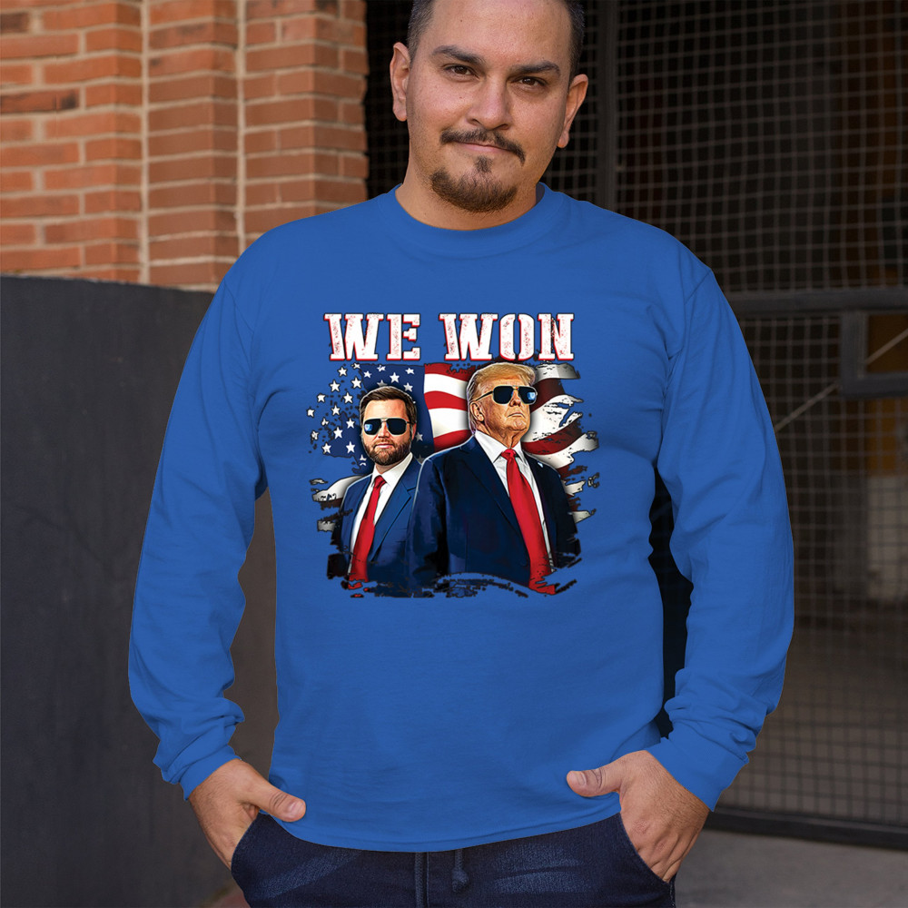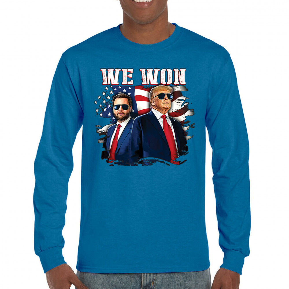 Celebrate Republican victory with this bold "We Won" design featuring Trump and patriotic flair—perfect for rallies, events, and patriotic pride.