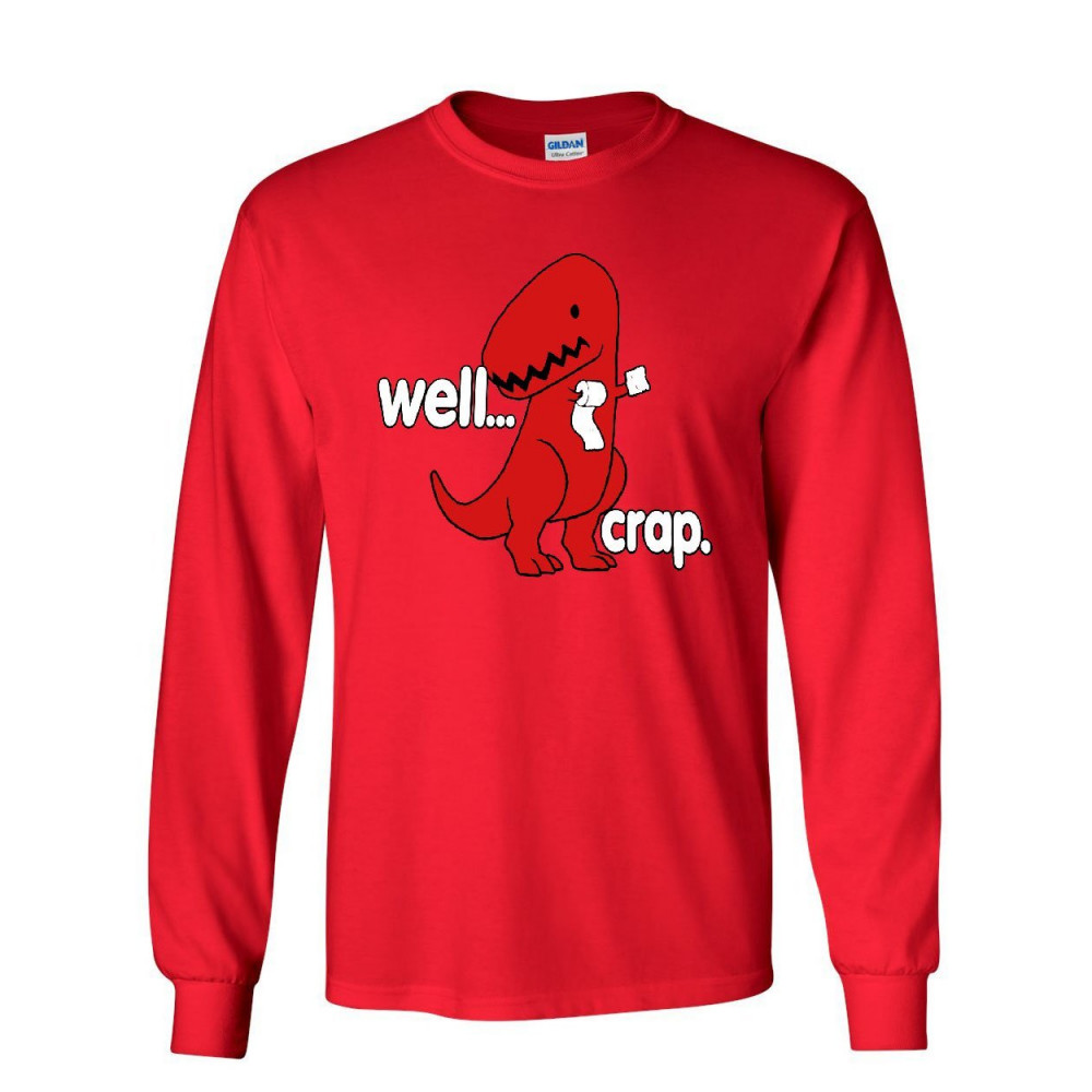 WELL CRAP T-REX well crap long sleeve t-shirt funny t-rex fail short hands tyrannosaurus tee red