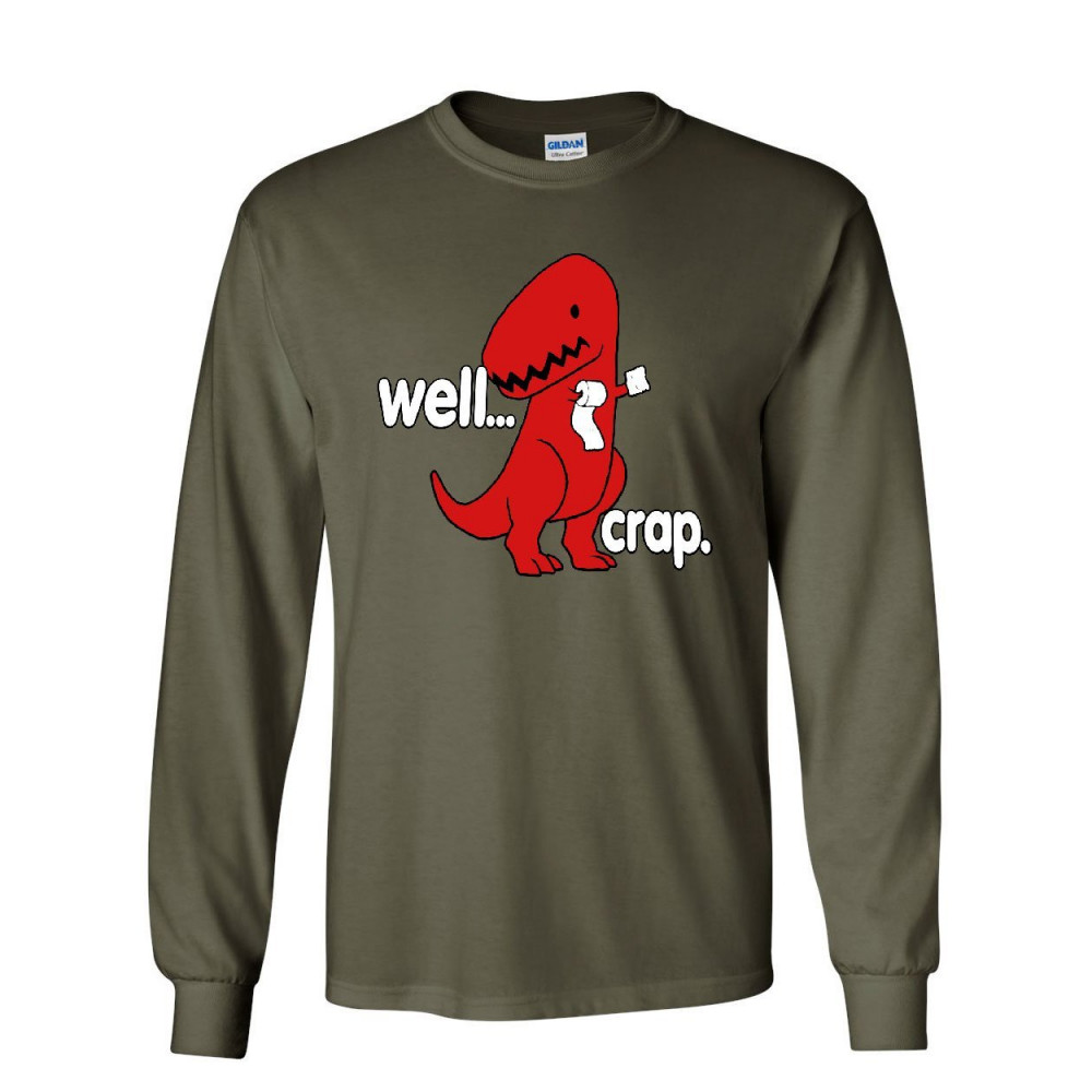 WELL CRAP T-REX well crap long sleeve t-shirt funny t-rex fail short hands tyrannosaurus tee military green