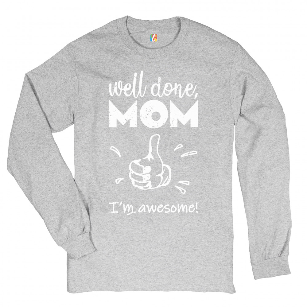 WELL DONE MOM I'M AWESOME long sleeve t-shirt mother's day i love you mom mommy gray