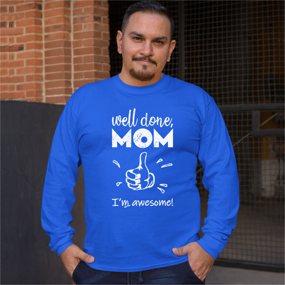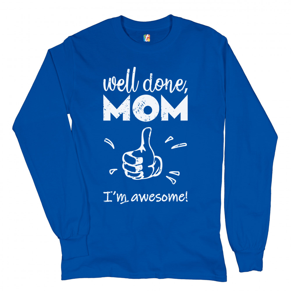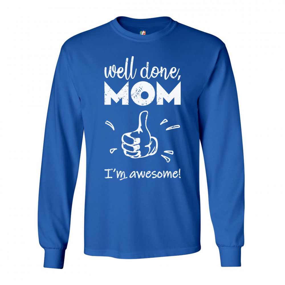 WELL DONE MOM I'M AWESOME long sleeve t-shirt mother's day i love you mom mommy royal blue