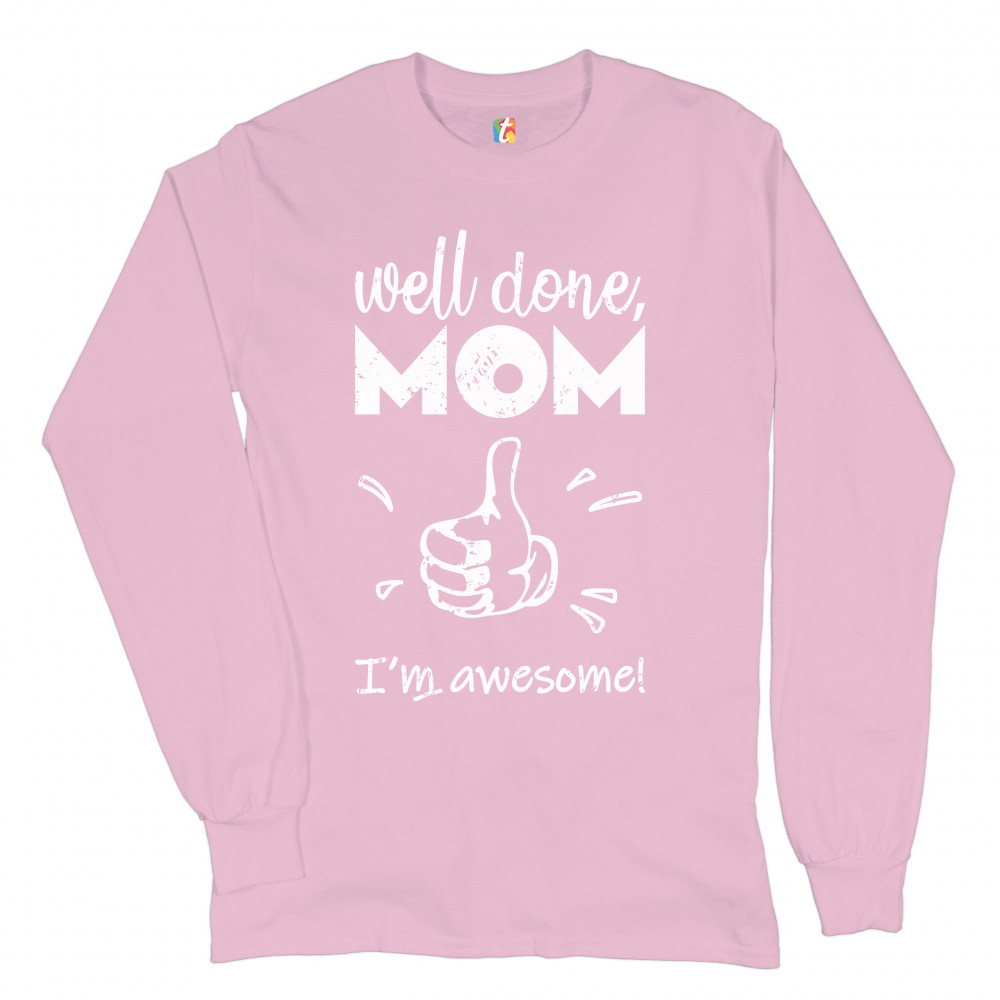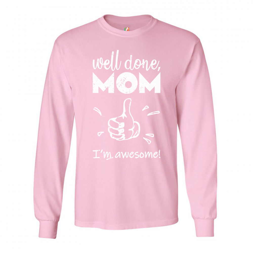 WELL DONE MOM I'M AWESOME long sleeve t-shirt mother's day i love you mom mommy light pink