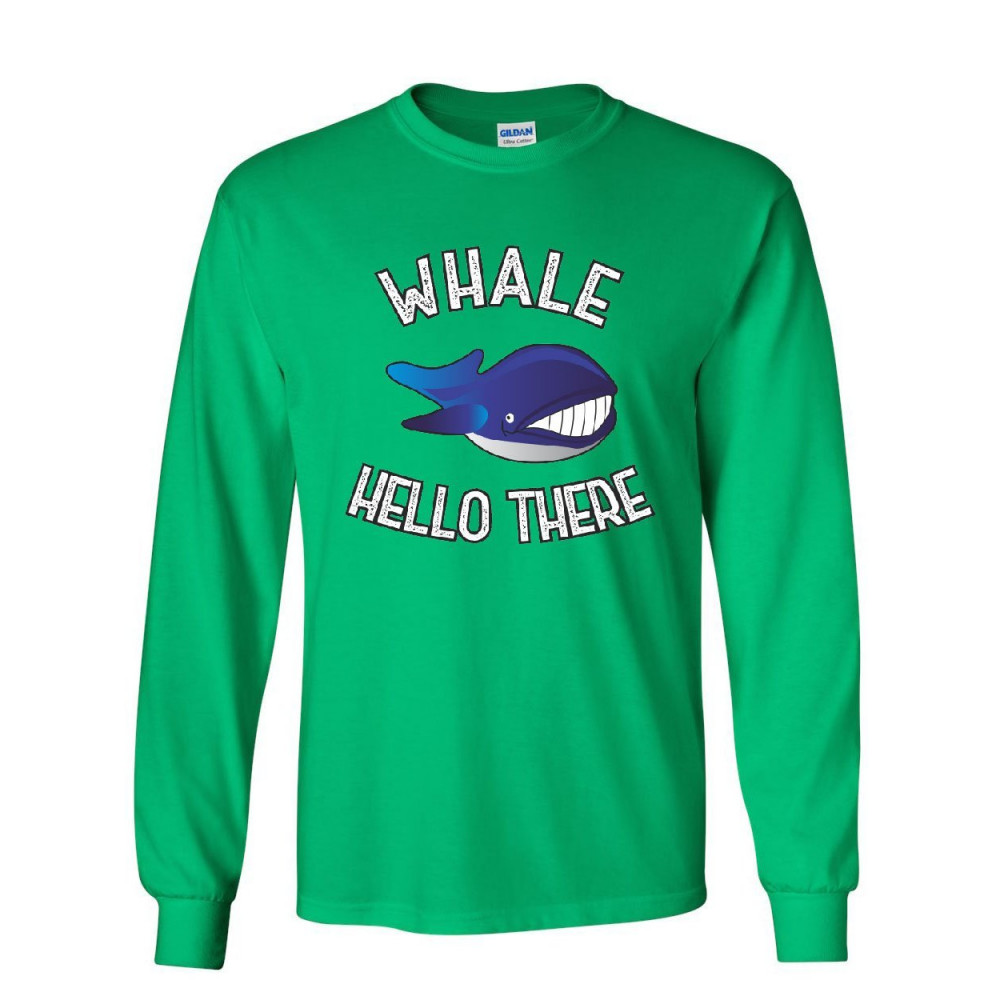 WHALE HELLO THERE long sleeve t-shirt funny wildlife ocean cute pun wordplay tee green