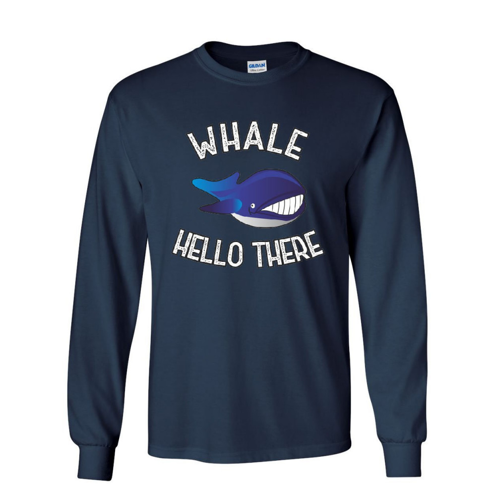 WHALE HELLO THERE long sleeve t-shirt funny wildlife ocean cute pun wordplay tee navy blue