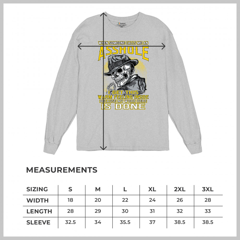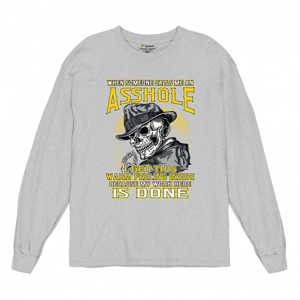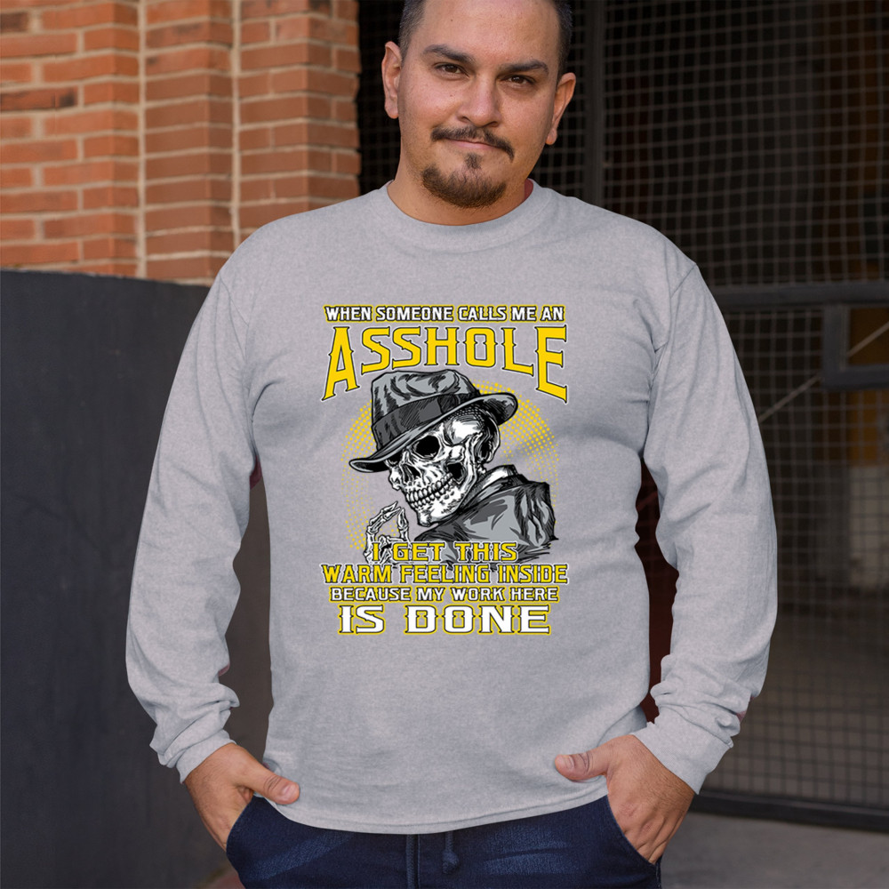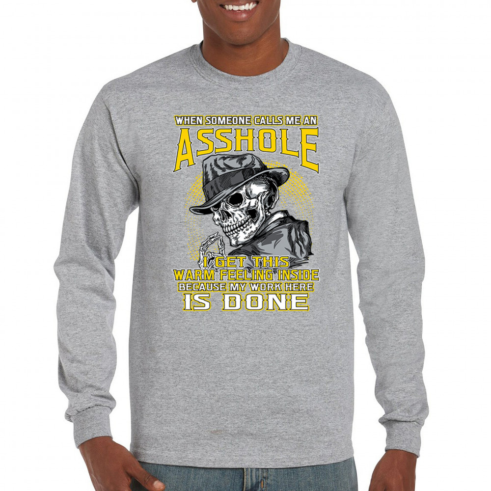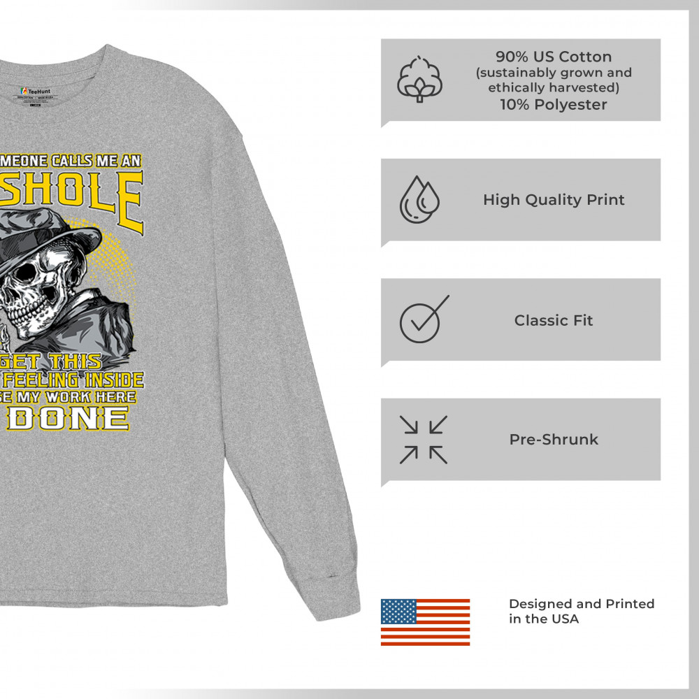 This badass design features a smirking skull in a fedora with a cigarette, backed by the line: “When someone calls me an asshole... my work here is done.†Built for dark humor fans, skull art lovers, and those who live life with sharp wit and zero regrets. Ideal for biker rallies, sarcasm nights, or anyone owning their attitude with pride.