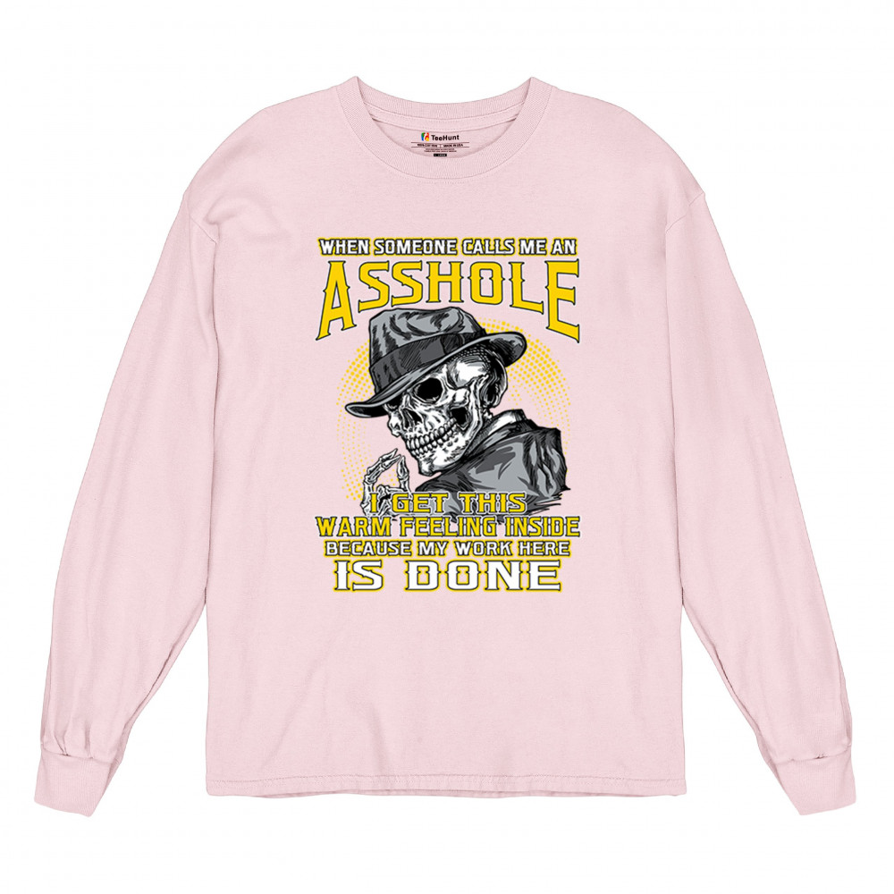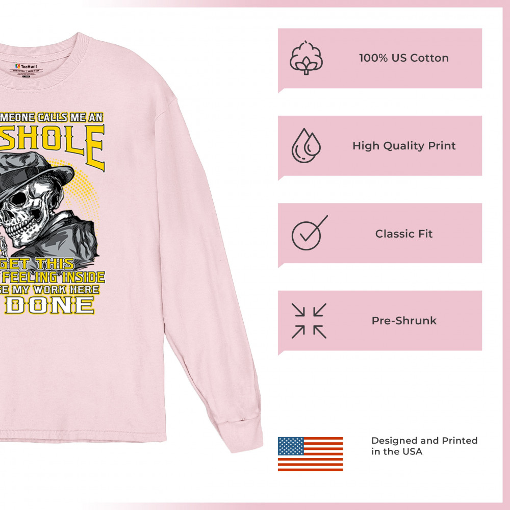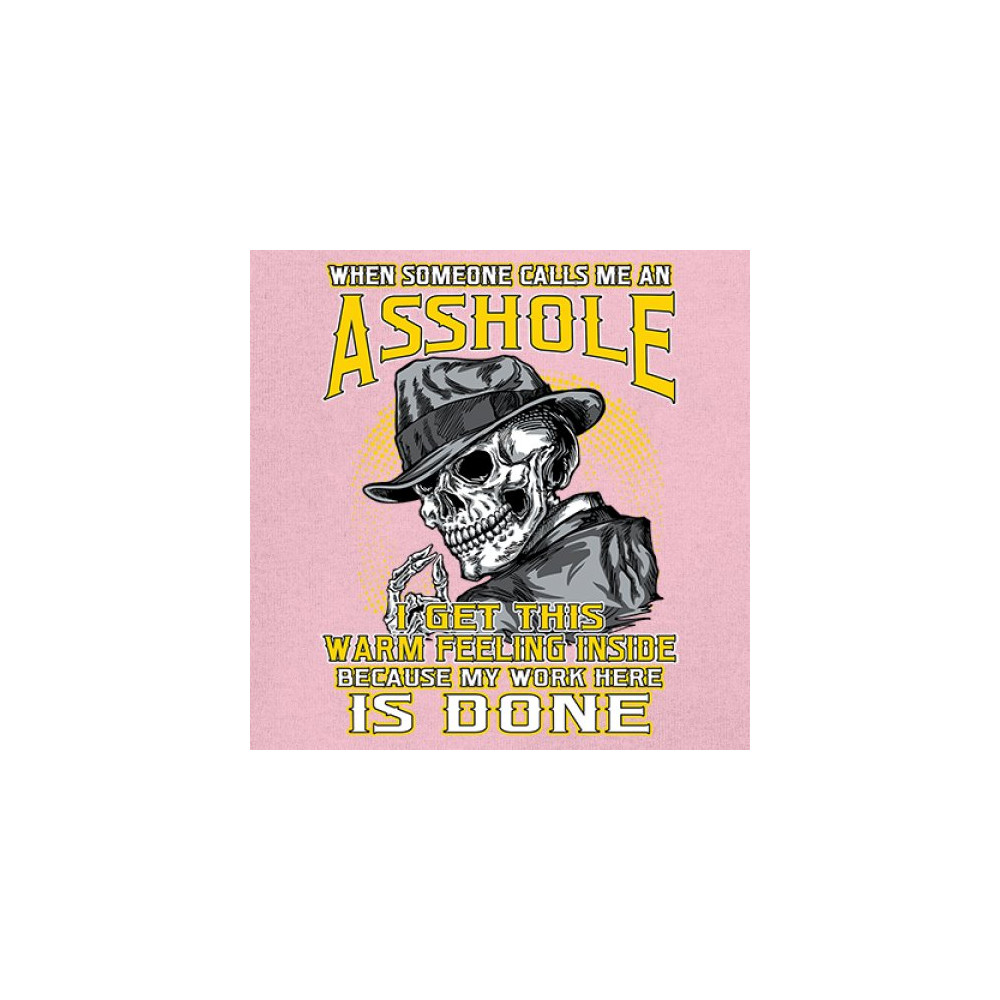 This badass design features a smirking skull in a fedora with a cigarette, backed by the line: “When someone calls me an asshole... my work here is done.†Built for dark humor fans, skull art lovers, and those who live life with sharp wit and zero regrets. Ideal for biker rallies, sarcasm nights, or anyone owning their attitude with pride.