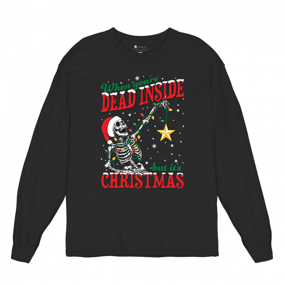 Celebrate humor and holiday spirit with the "When You're Dead Inside But It's Christmas" skeleton design. Perfect for parties and unique gifts.