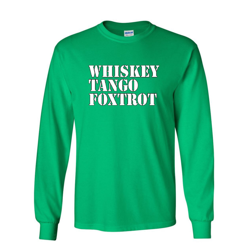 WHISKEY TANGO FOXTROT long sleeve t-shirt wtf funny green