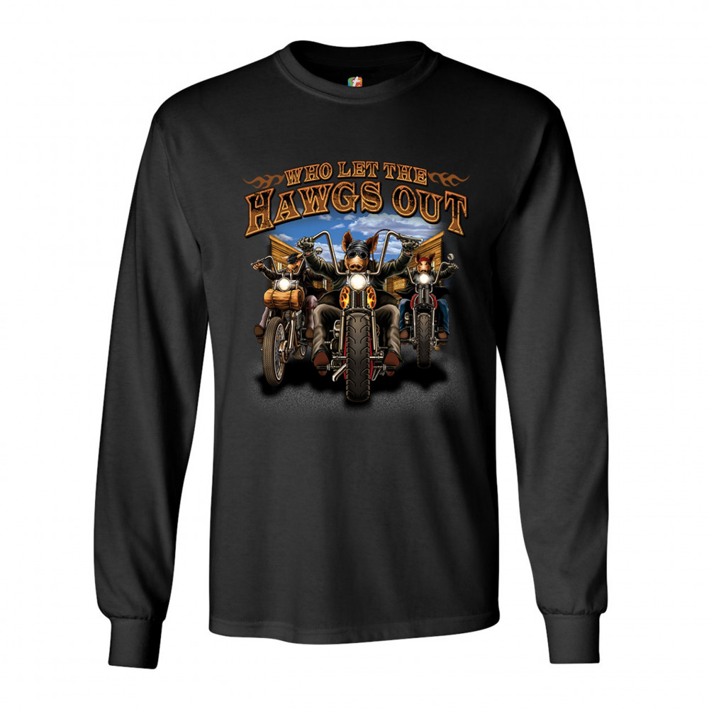 WHO LET THE HAWGS OUT long sleeve t-shirt biker motorcycle gang live to ride black