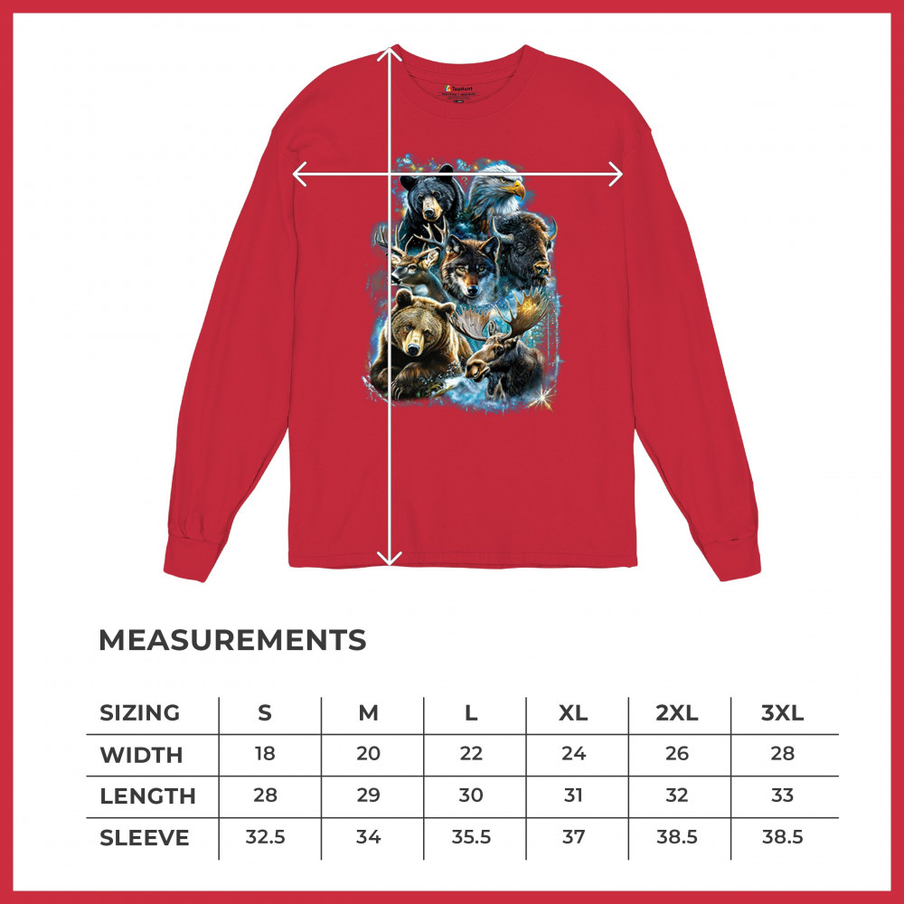 Celebrate the untamed beauty of the wilderness with this powerful design showcasing North America’s most iconic animals—moose, wolf, grizzly, black bear, bison, eagle, and deer. Packed with forest energy and rich detail, this piece honors rugged mountain life, animal strength, and a deep respect for wild nature.