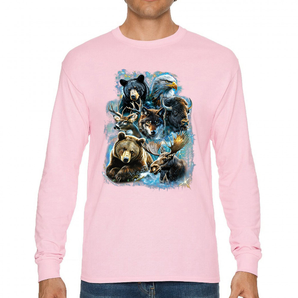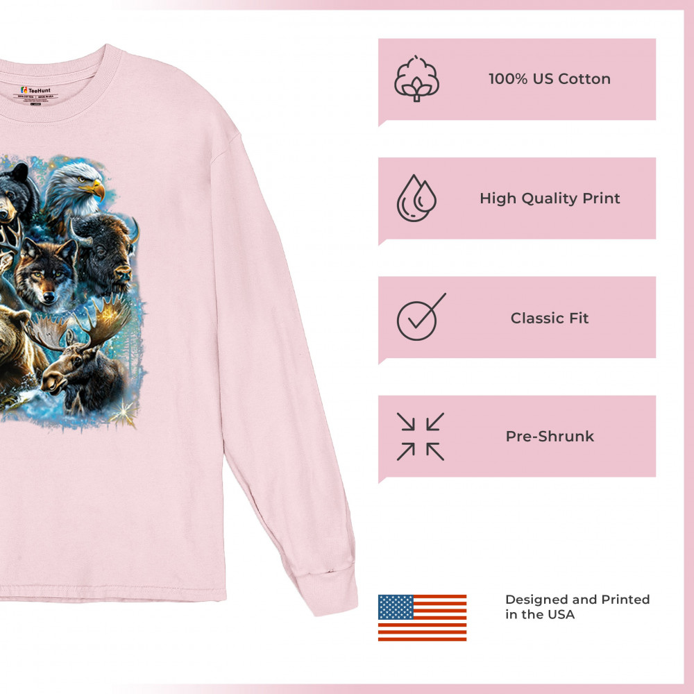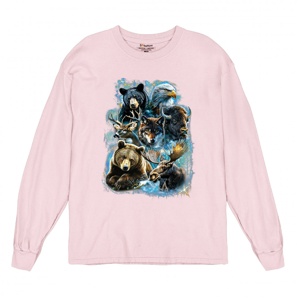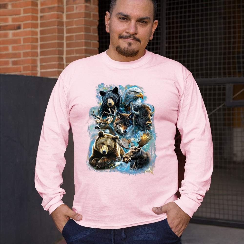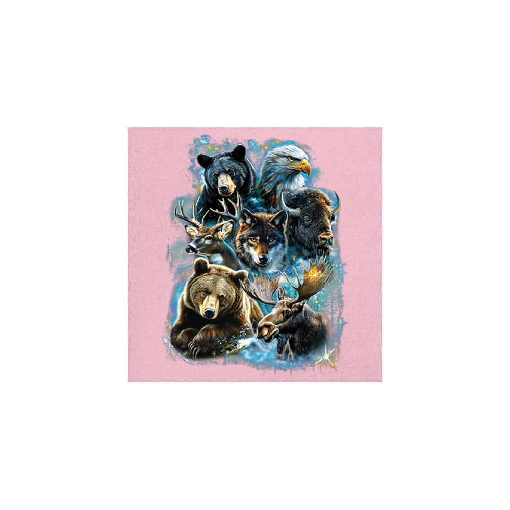 Wilderness design with moose, bear, eagle, bison, and wolf. A bold tribute to forest animals, nature strength, and rugged outdoor spirit.