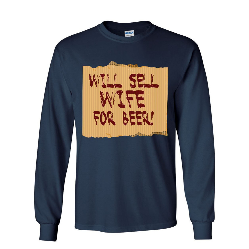 WILL SELL WIFE FOR BEER long sleeve t-shirt calavera navy blue