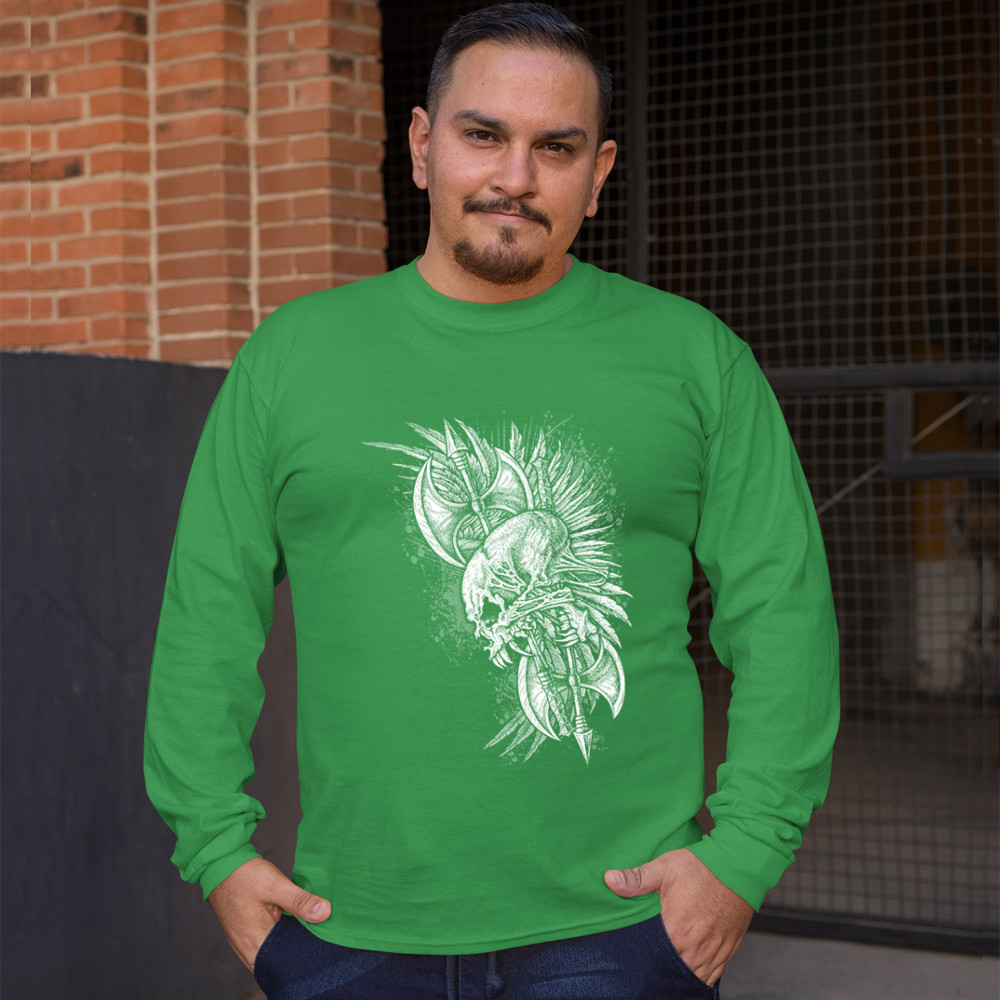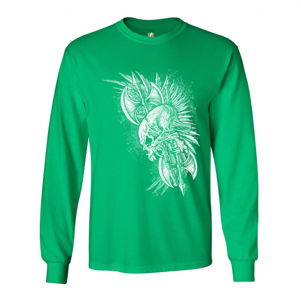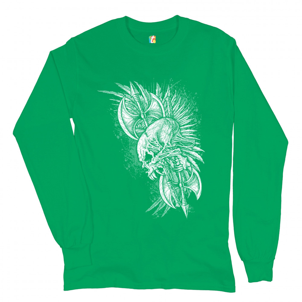 WINGED SKULL long sleeve t-shirt viking warrior skeleton labrys axe gothic green