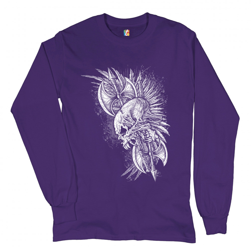 WINGED SKULL long sleeve t-shirt viking warrior skeleton labrys axe gothic purple