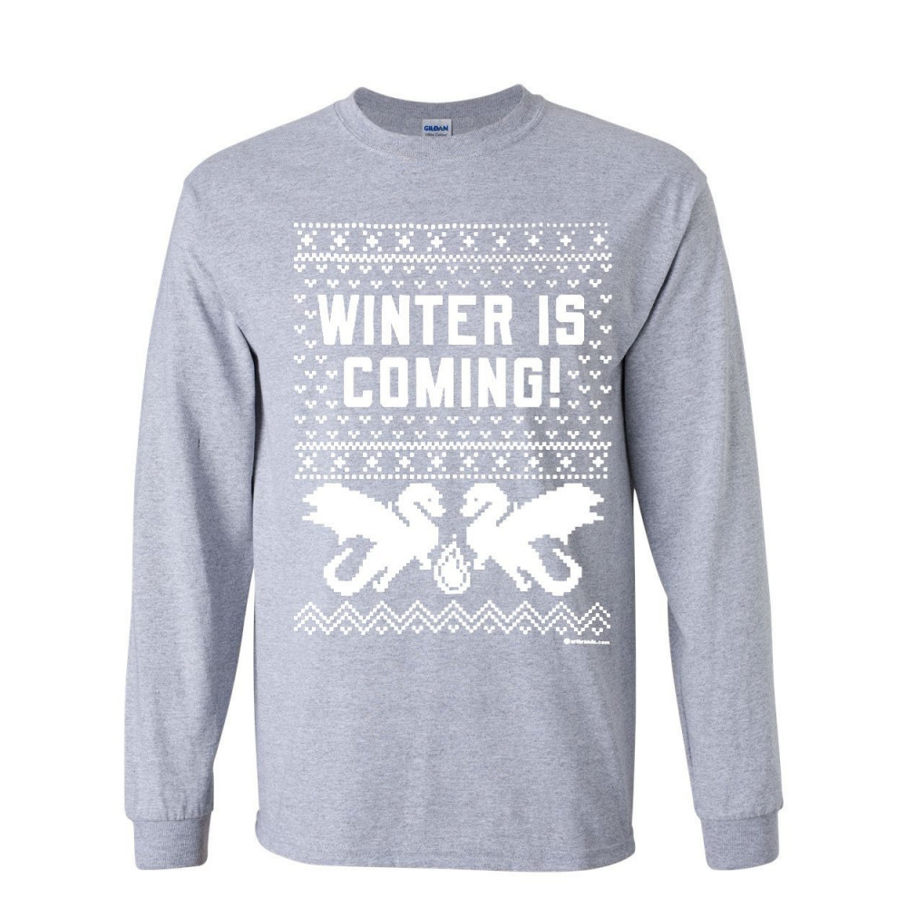 WINTER IS COMING PARODY long sleeve t-shirt ugly sweatshirt xmas gray