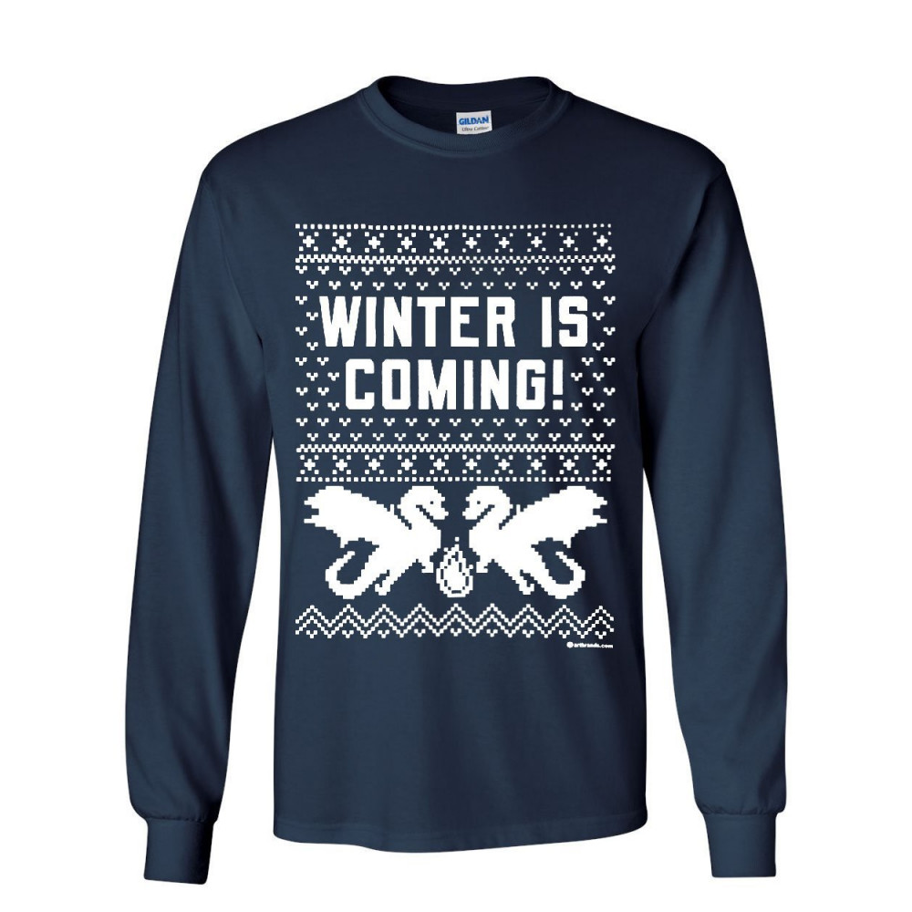 WINTER IS COMING PARODY long sleeve t-shirt ugly sweatshirt xmas navy blue