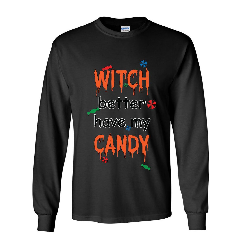 WITCH BETTER HAVE MY CANDY long sleeve t-shirt halloween trick or treating tee black