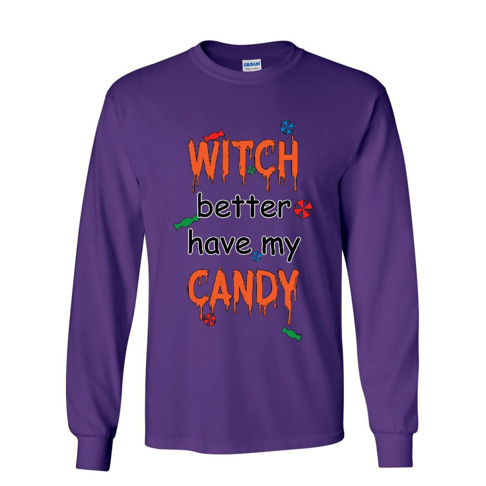 WITCH BETTER HAVE MY CANDY long sleeve t-shirt halloween trick or treating tee purple