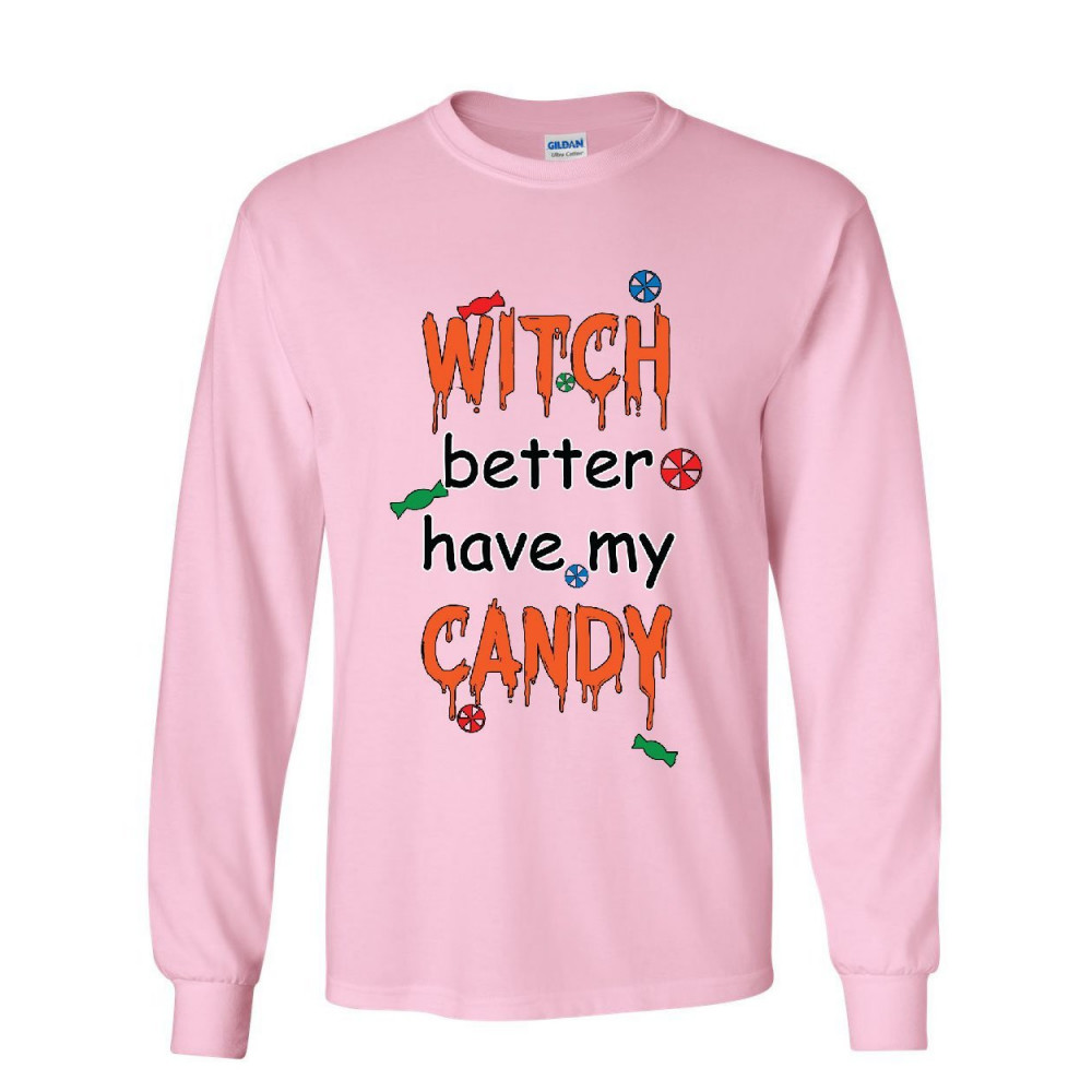 WITCH BETTER HAVE MY CANDY long sleeve t-shirt halloween trick or treating tee light pink