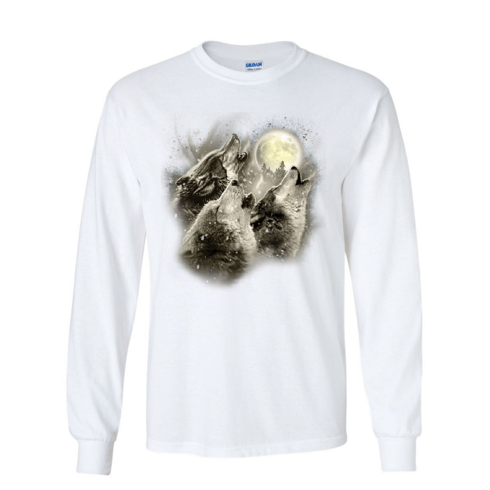 WOLF HOWL long sleeve t-shirt wild wolf pack predator animals nature moon tee white