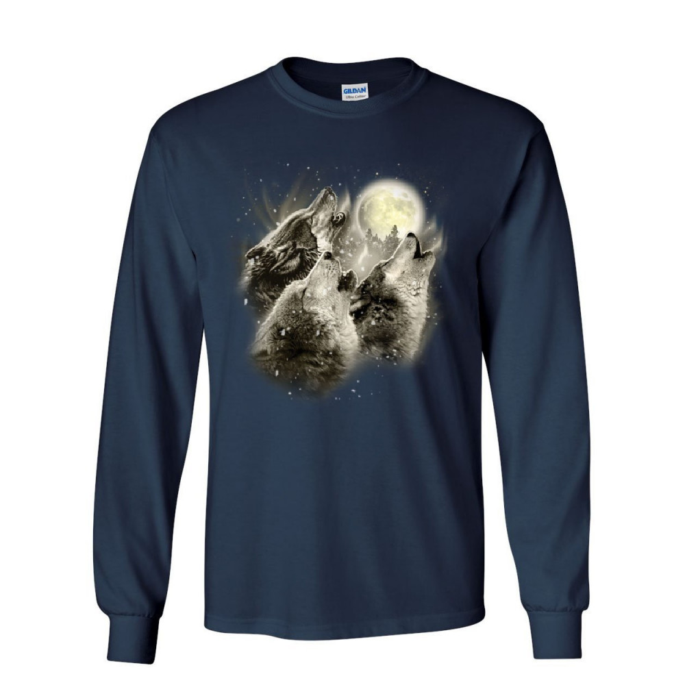 WOLF HOWL long sleeve t-shirt wild wolf pack predator animals nature moon tee navy blue